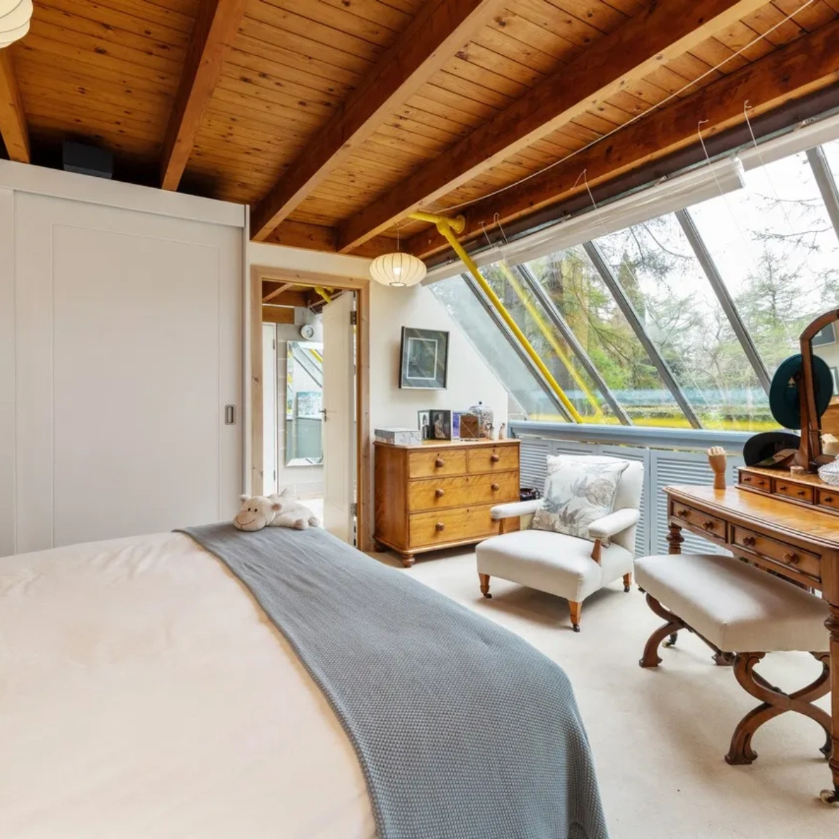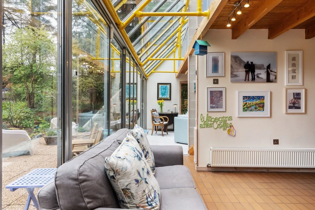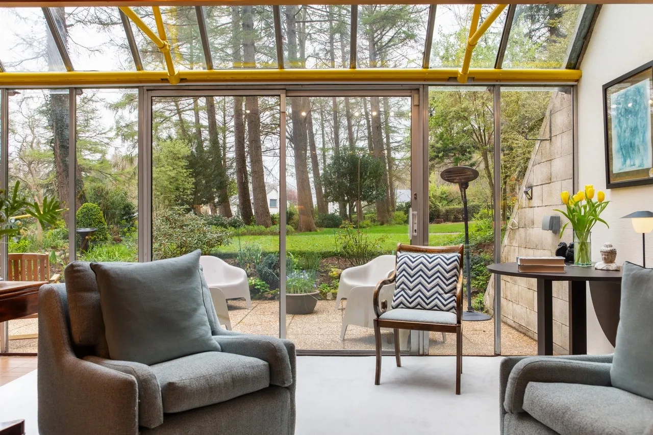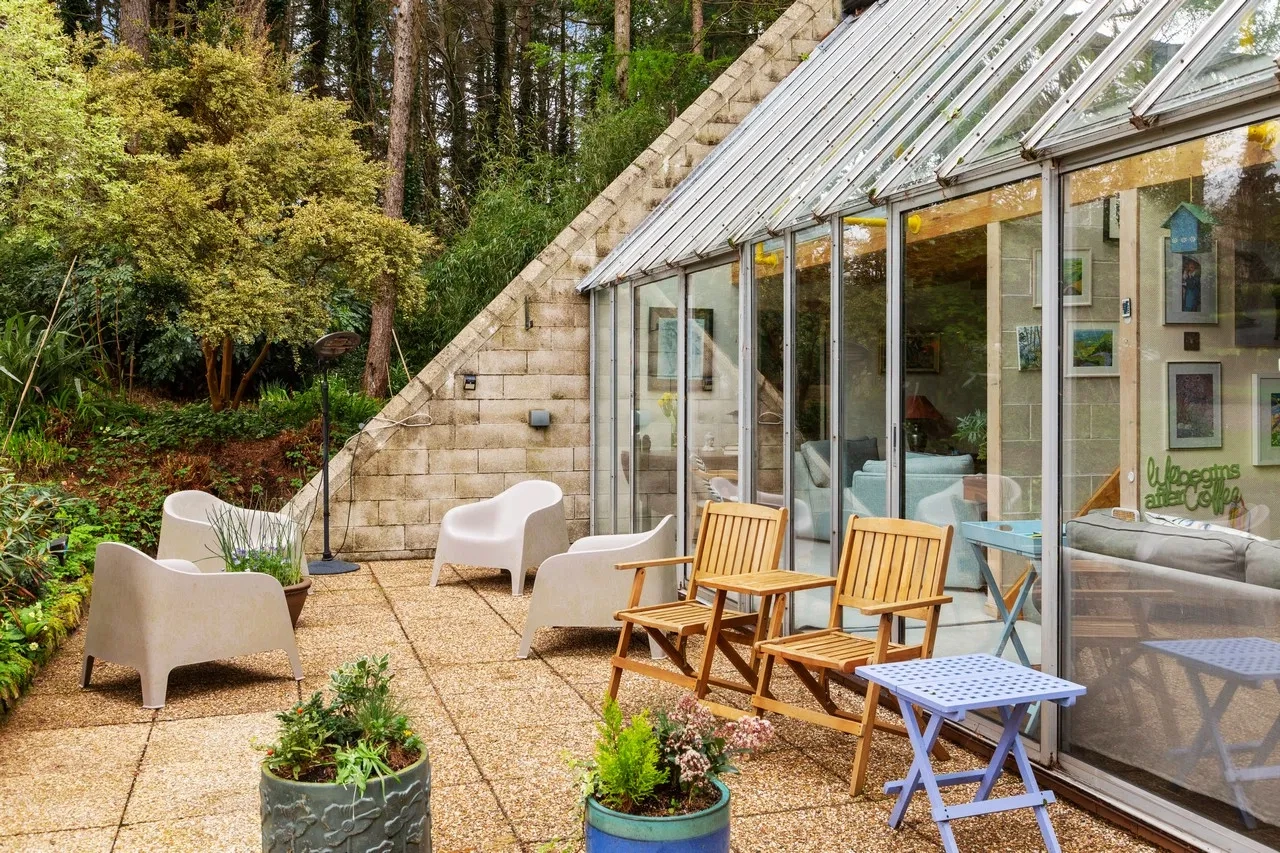 Nestled in a private woodland setting, An Grianan is a quirky Irish home that makes the most of its incredible surroundings. Designed by architect Derek Kilfeather, the property was originally built in 1976. Specifically designed to be a passive solar house, it has a south-facing aspect with a fully glazed front that generates exceptional heat and light throughout.