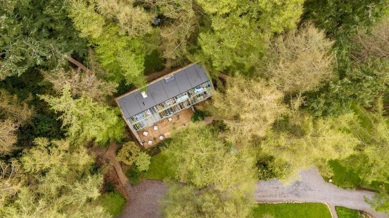 Approached via a long, tree-lined avenue, the property is immersed in nature on all sides. The modern open plan layout and the doubled-glazed windows over the full width of the house generate great connectivity and wonderful views into the garden and the surrounding landscape. On the ground floor, there is a living room, pantry, store room, kitchen/dining room, utility room, shower room, entrance hall, study and two bedrooms. A further three bedrooms are located on the first floor, along with an ensuite, a landing/office and a family room.