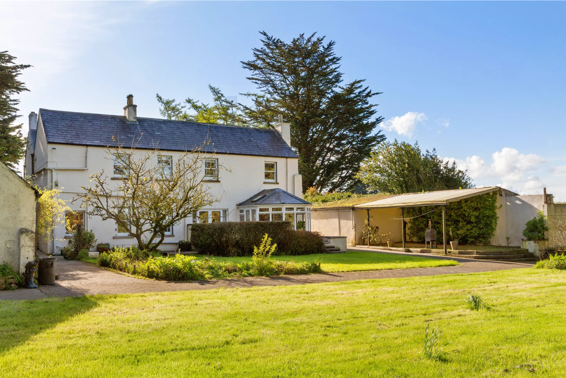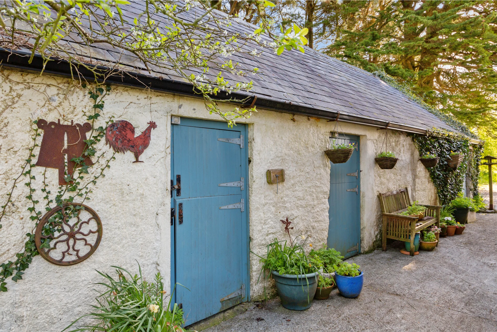 The outbuildings on the property offer the potential for additional living space or a studio, subject to planning permission.