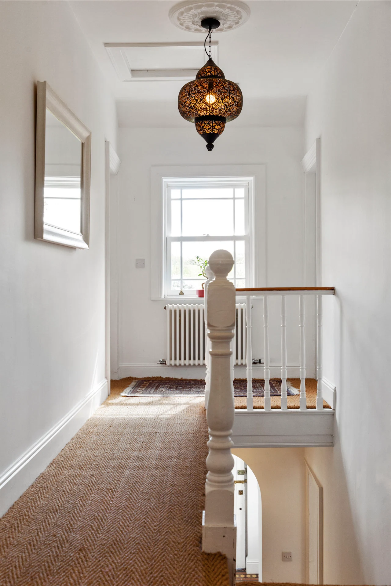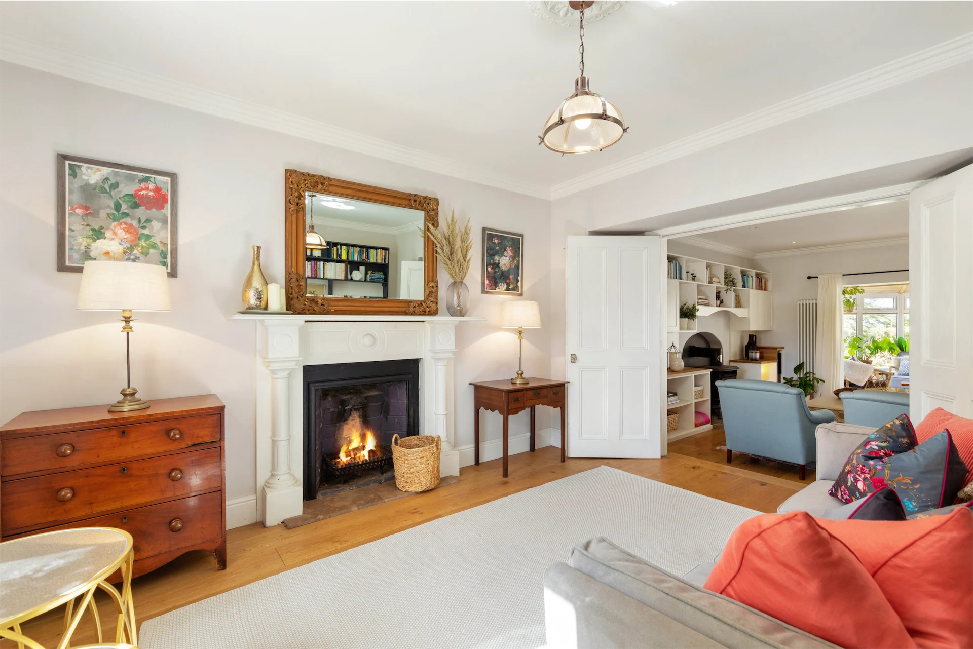 The entrance porch is a charming introduction to the property, with its beautiful Victorian tiles and welcoming atmosphere. Stepping into the light-filled hallway, you are immediately struck by the luxurious texture of the Sisal carpets that add a touch of elegance and warmth to the space.