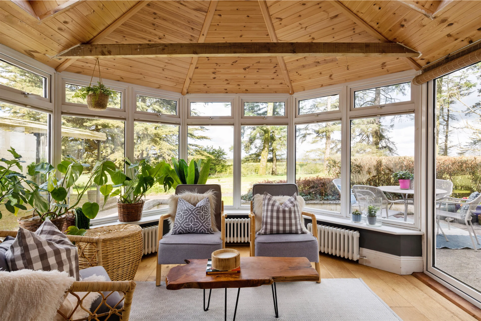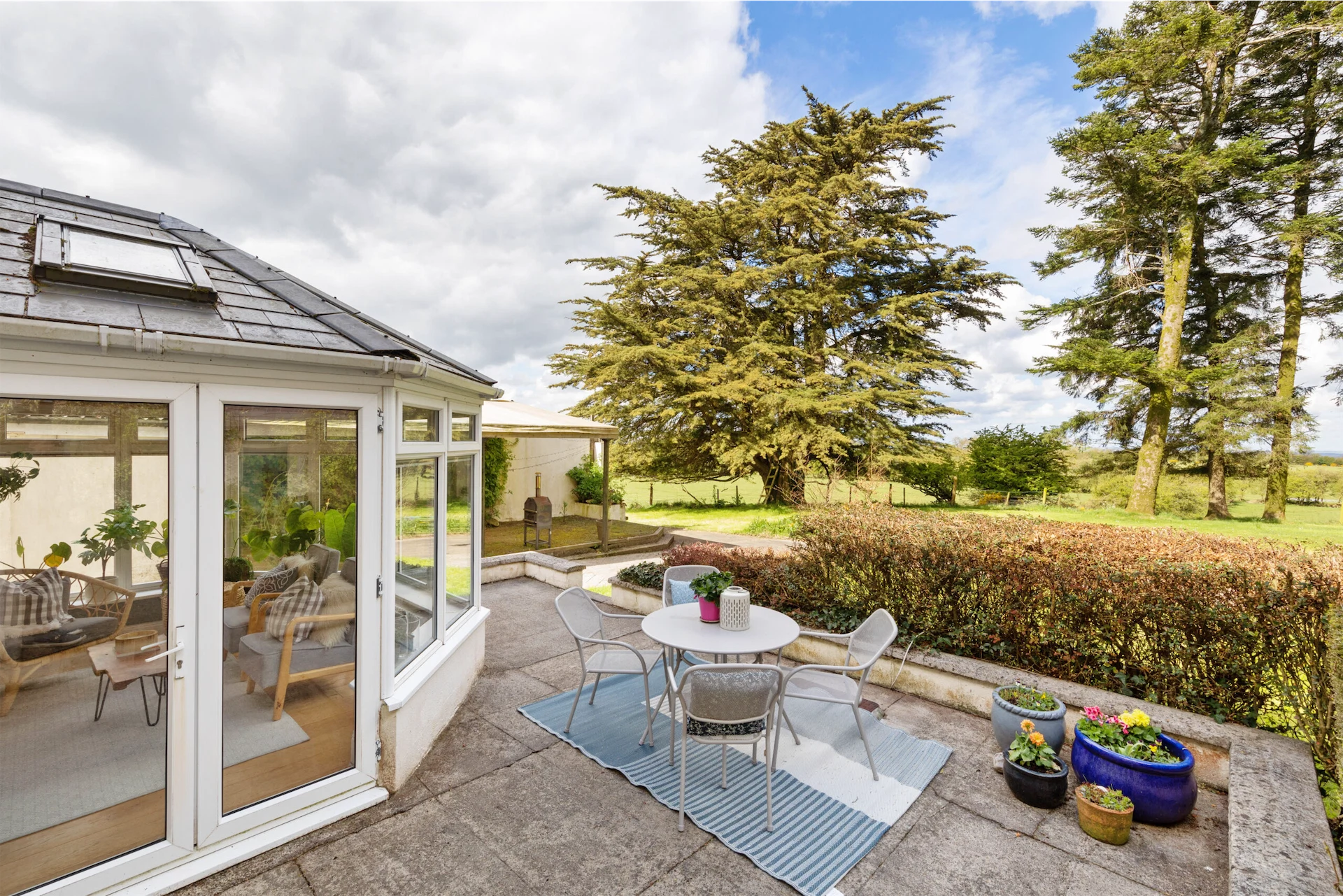 The conservatory is a peaceful retreat, providing the perfect spot to relax and take in the breath-taking views of the surrounding countryside.