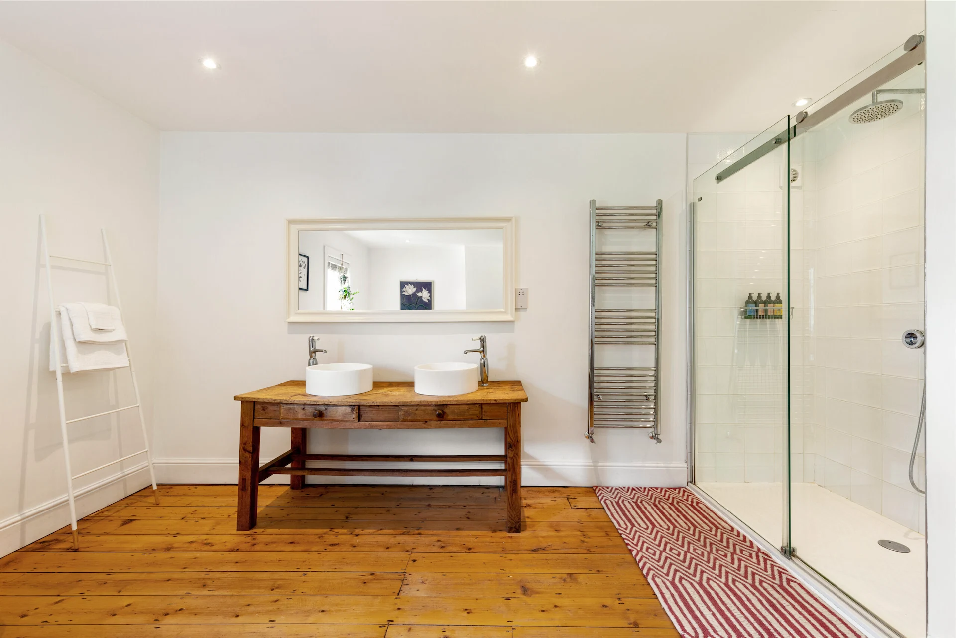 The guest bathroom is a perfect blend of form and function, with sleek fittings and a modern shower that provide a refreshing and rejuvenating experience.