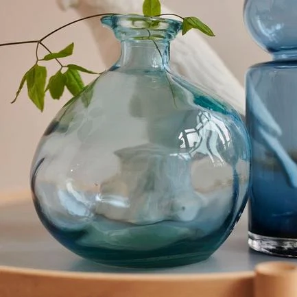 Made using 100 per cent recycled glass, this vase is lovely for those who prefer cooler tones, and would make a great centrepiece on a dining table.