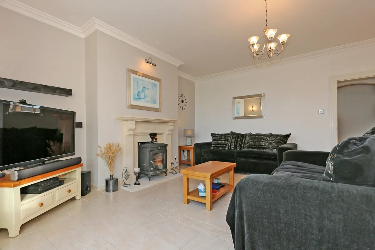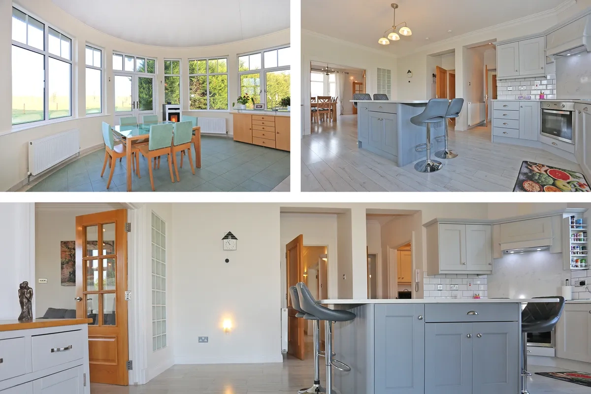 The sunroom has a vaulted ceiling to create warmth, while double doors lead out to the patio area at the side of the house. Meanwhile, the kitchen has been fitted with granite worktops and a large window with views of the rear garden.