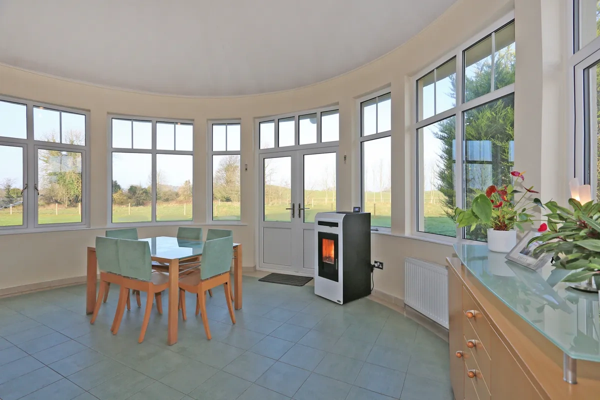 Set back from a quiet country road, with a sweeping driveway and a west-facing patio to the rear, the property is quite well-connected with Mullingar town just 10km away, while Dublin city centre is 80km away and can be reached via the M4.