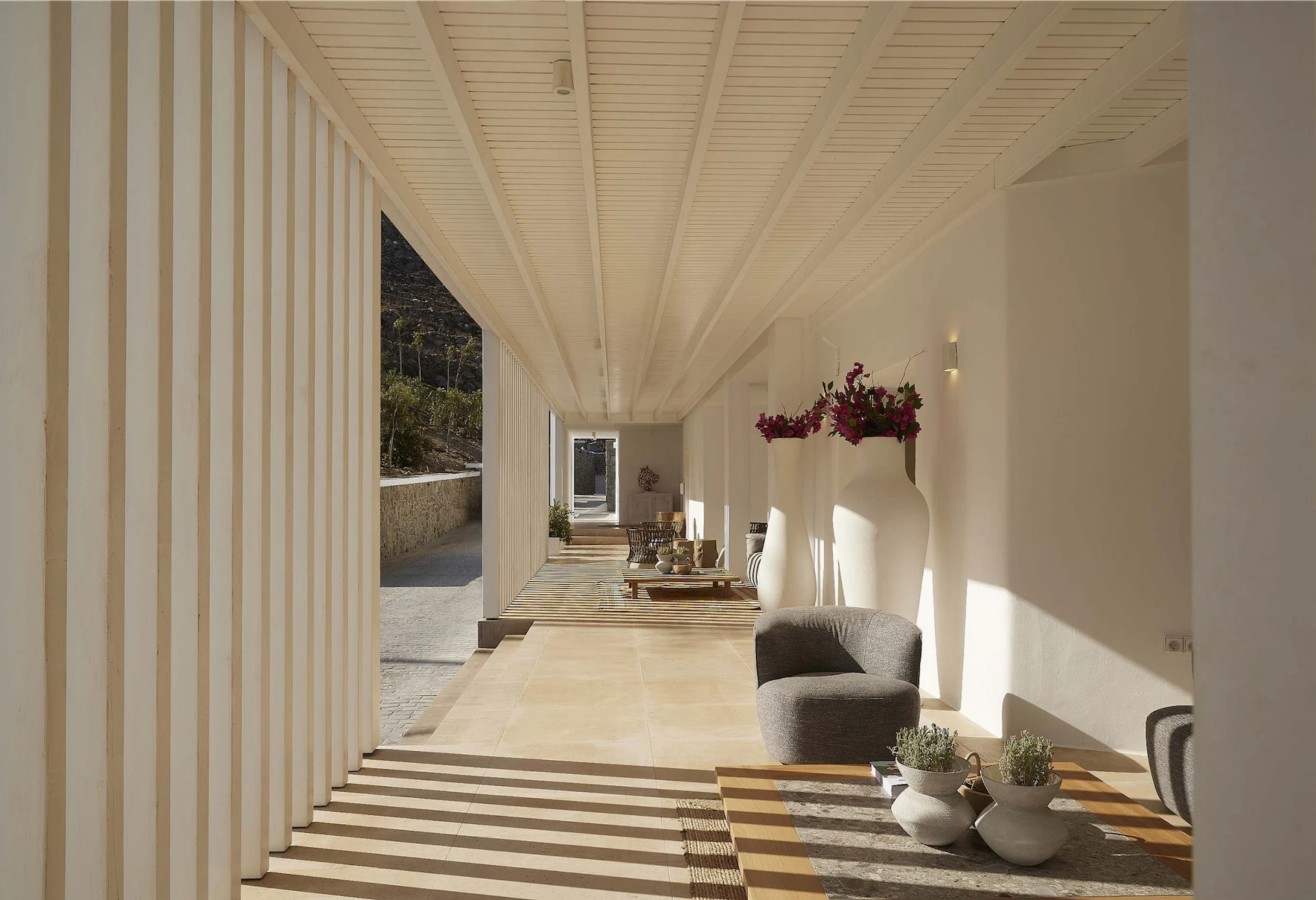 My hotel of choice was Once in Mykonos. Originally used as a private villa, the building is now a beautiful hotel feast. An adults-only sanctuary with just 58 rooms, there are breathtaking ocean views and direct access to Ornos Beach. The hotel is just a 10-minute drive from the vibrant centre of Mykonos, yet it feels like a world away in a secluded corner of the island. The rooms are spacious and expertly decorated in whitewashed tones, leading to an authentic but modern Greek feel.