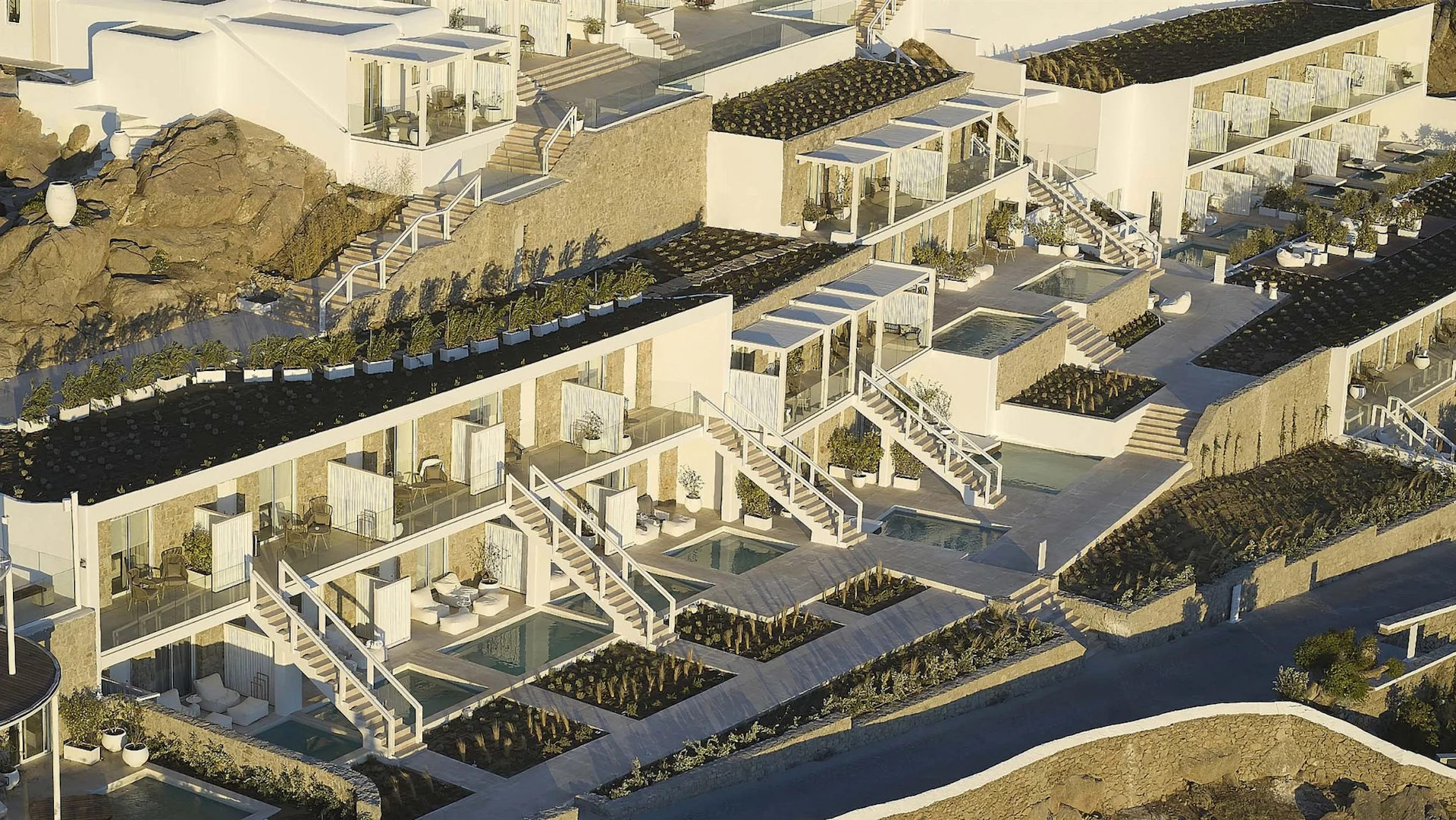 The food at the hotel is also exquisite. From its delicious breakfast buffet to its dinner options, all of the gastronomy on offer is inspired by classic Mediterranean tastes and flavours with a modern twist. However, a real highlight is the majestic Infinity Bar with its backdrop of Mykonos’ golden sunsets. Sitting with a cocktail in hand as the sun says goodbye is a moment never to be forgotten. Then to clear the head the morning after, make sure to enjoy some morning yoga while taking in those breathtaking views.