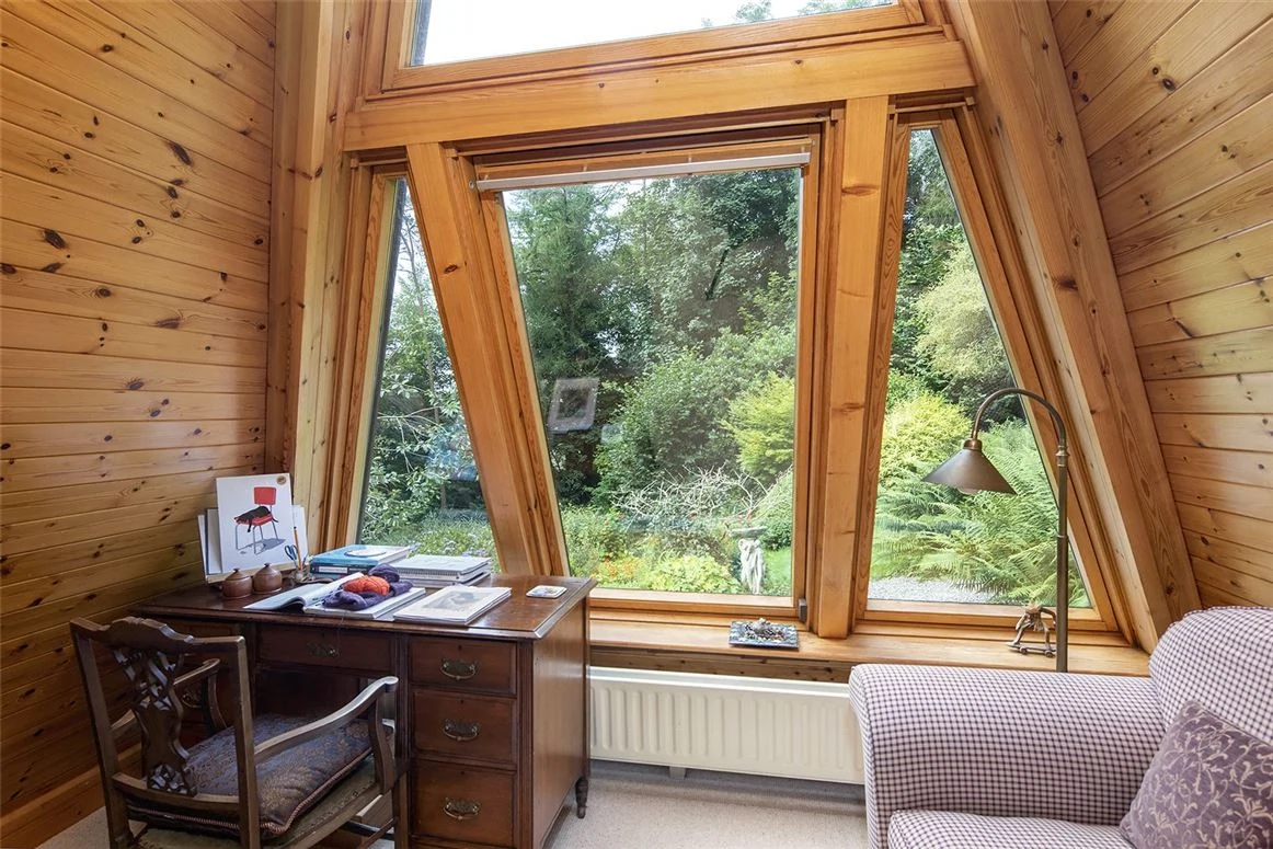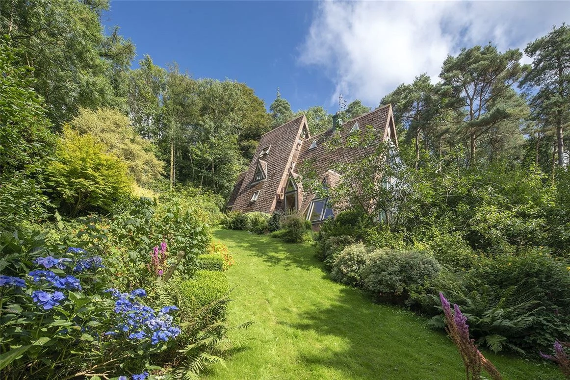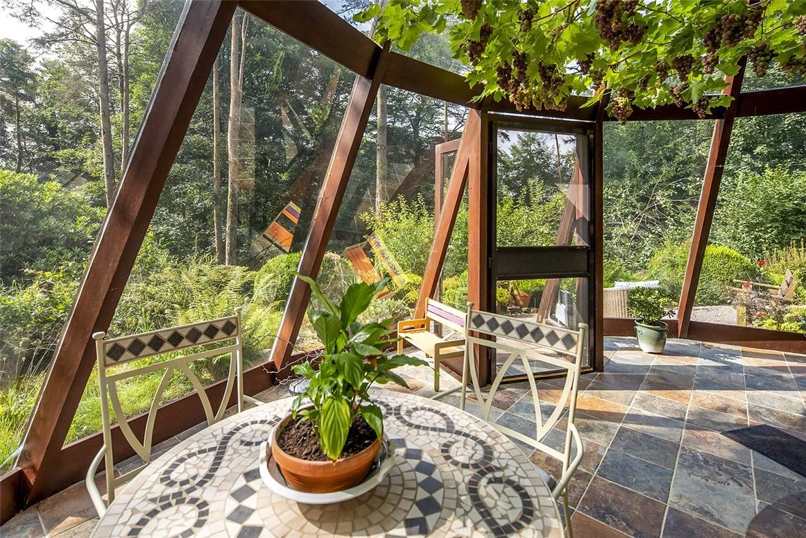 Outside, the mature gardens and meandering paths merge with the treeline beyond, giving the place a magical, ethereal quality. There’s also a woodstore and a workshop on the 2.25-acre property.