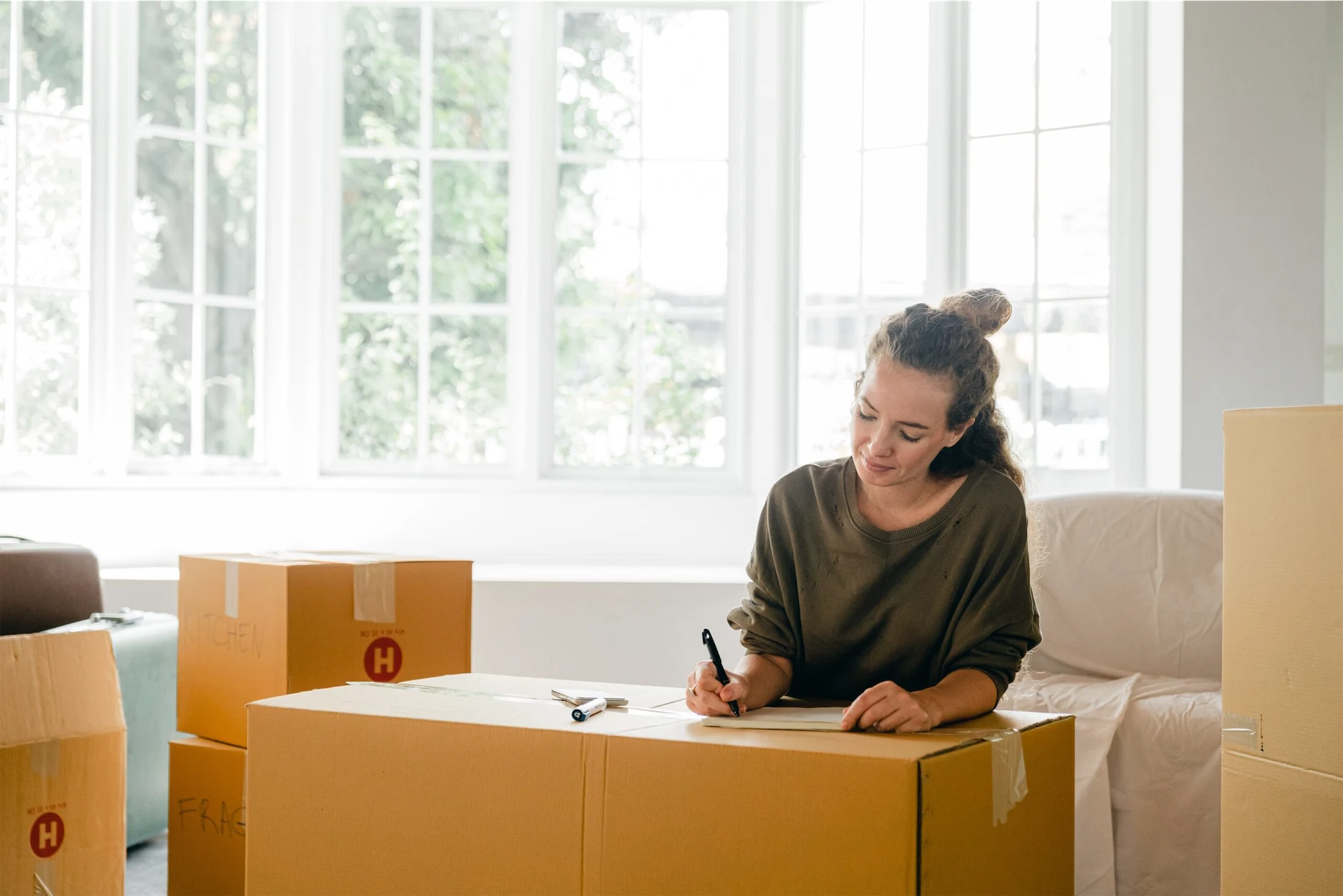 Begin acquiring boxes and start the long process of organising and packing. Start with things you won’t need, such as out-of-season clothing or books and ornaments you can live without for a few weeks.