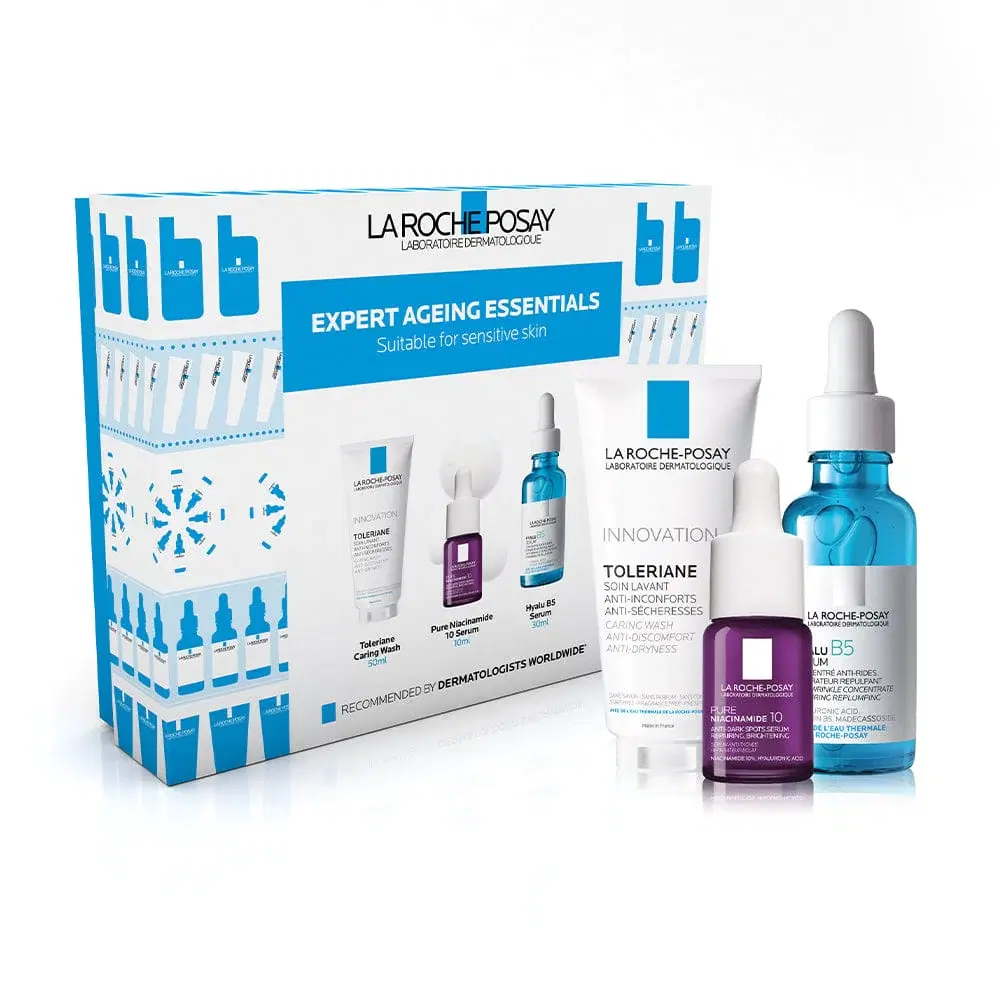 This powerful collection soothes, hydrates and protects delicate skin. It includes La Roche-Posay’s Toleriane Caring Wash, a gentle daily face wash that deeply cleanses without over drying; Pure Niacinamide 10 Serum, which evens skin tone, repairs and brightens; and Hyalu B5 Hyaluronic Acid Serum, an intensely hydrating treatment clinically proven to re-plump and repair skin in just 24 hours.