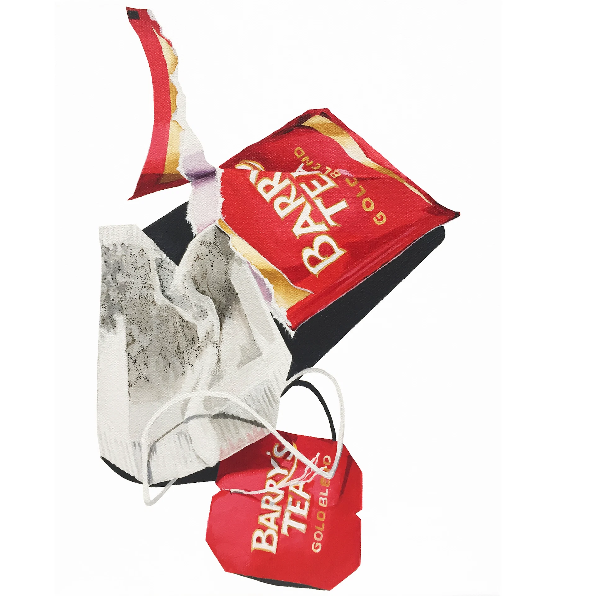 “In the beginning, I was always going across to the Mater and back to see him and I was drinking tea all the time. Everywhere you stopped and everyone you met would bring you tea. I’d stop at the garage and each time I would tear open one of the single teabags. And I remember thinking when I get back painting I’ll bloody well paint that.”