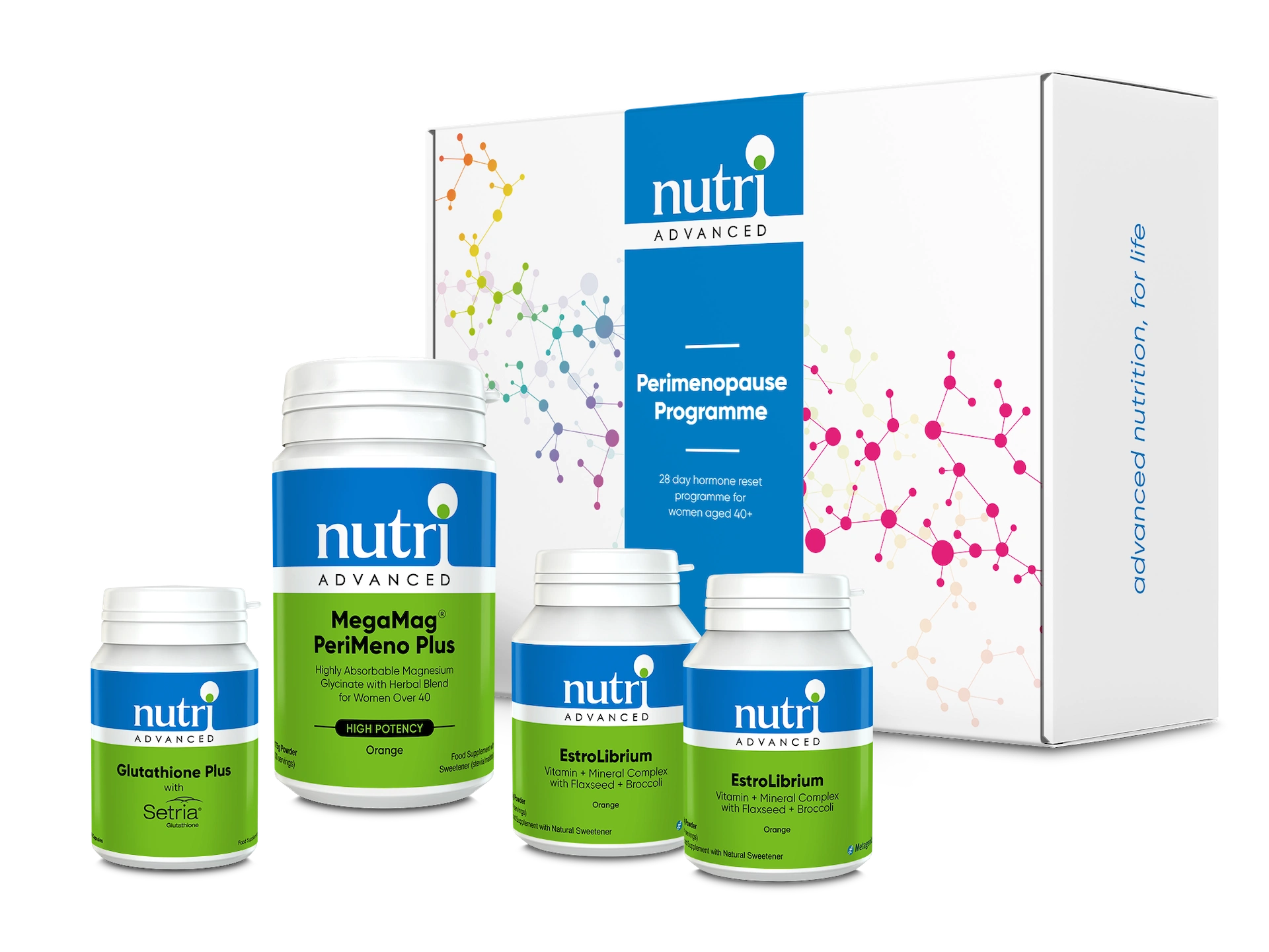 MegaMag PeriMeno Plus is a magnesium powder enriched with vitamins and a herbal blend of rhodiola, ashwagandha, sage, shatavari and red clover. It provides support for excessive sweating, fatigue, poor memory and brain fog as well as a reduction in tiredness, anxiety and low mood. EstroLibrium is a powerful high-strength powder formula designed to support hormone balance and healthy oestrogen metabolism. and finally, Glutathione Plus protects the body from oxidative stress, as well as facilitating the detoxification of toxins and carcinogens.