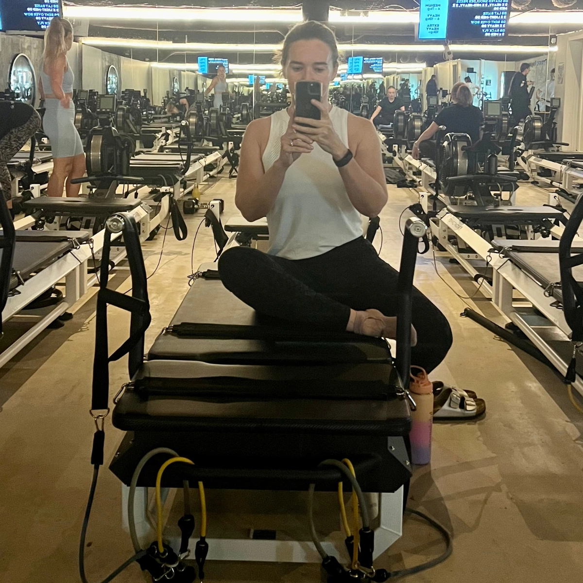 My latest discovery is something of a blend of the two above. Melding all the Reformer mobility and strength-building goodness of Platinum with the heart-pounding cardio high of Headon, Strong Pilates promises a dose of both. Brand new to Ireland, the studio opened its doors in Dublin in March 2024, with machines they call “Rowformers” – half rowing machine/half reformer (some are half spin bike/half reformer). The premise is straightforward enough, you work between the two, targeting slow-twitch muscle fibres on the Strength side of the machine (reformer), and then getting your heart rate up on the Row/Ride side with bursts of intensity to get the fast-twitch muscles burning.