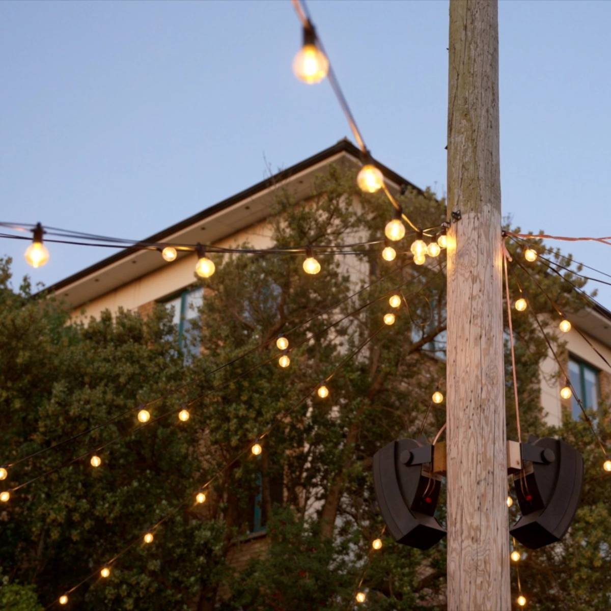 Rustic tables, pretty planting, and an inviting coffee hatch lure you in, and cleverly screen the sauna activity beyond.