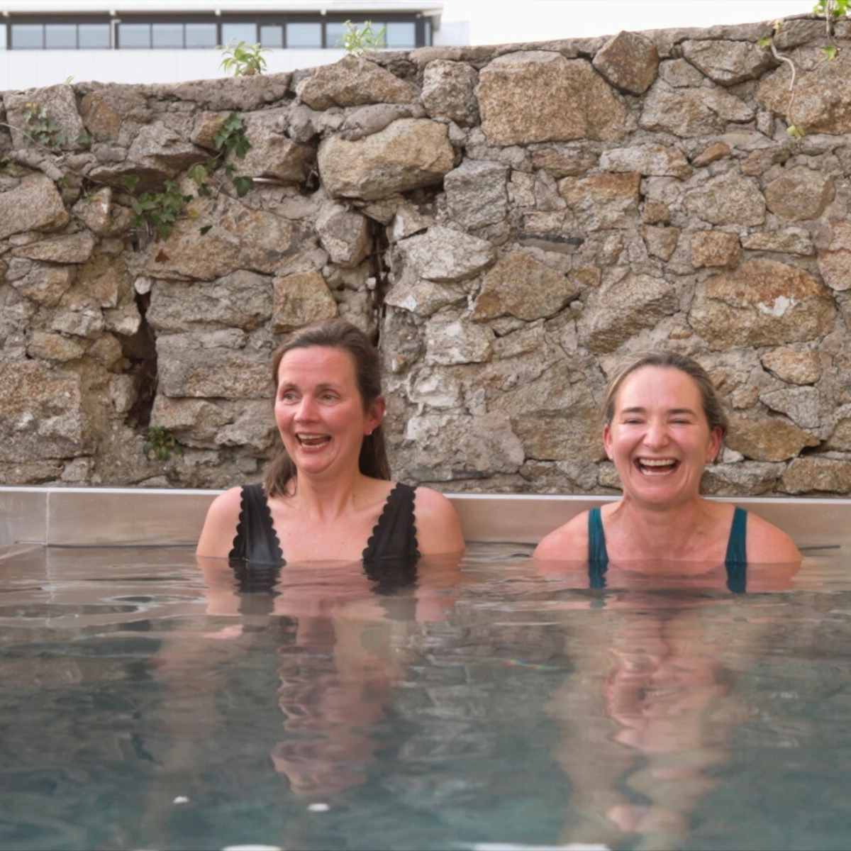 People drift between the sauna, plunge, and warm pool. There’s no rush, no pressure, just a gentle encouragement to follow what feels good.