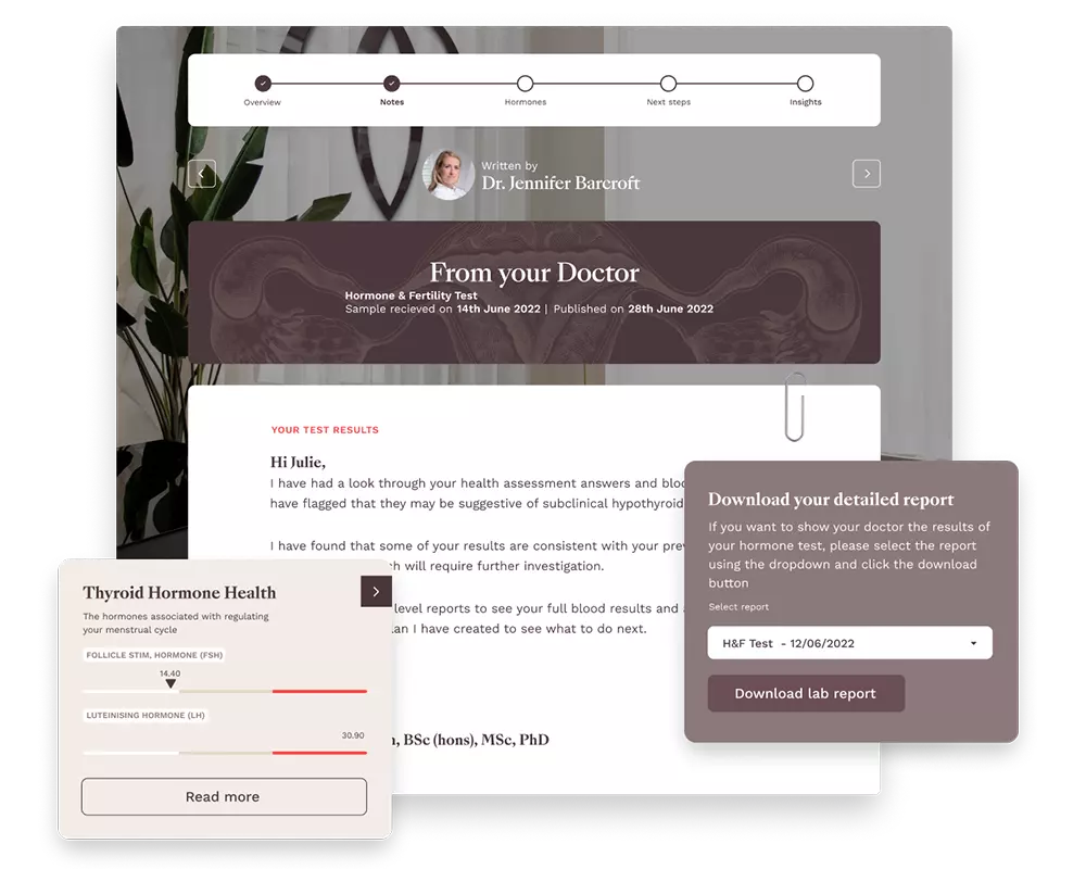 Step one involves an online health assessment, which spans 30 questions and helps their expert team gain greater insight into every symptom, your medical history, lifestyle and periods in order to create a bespoke at-home hormone test. At this point, 26% of people get a potential diagnosis by calculating their risk profile for up to 18 conditions related to reproductive health, like PCOS.