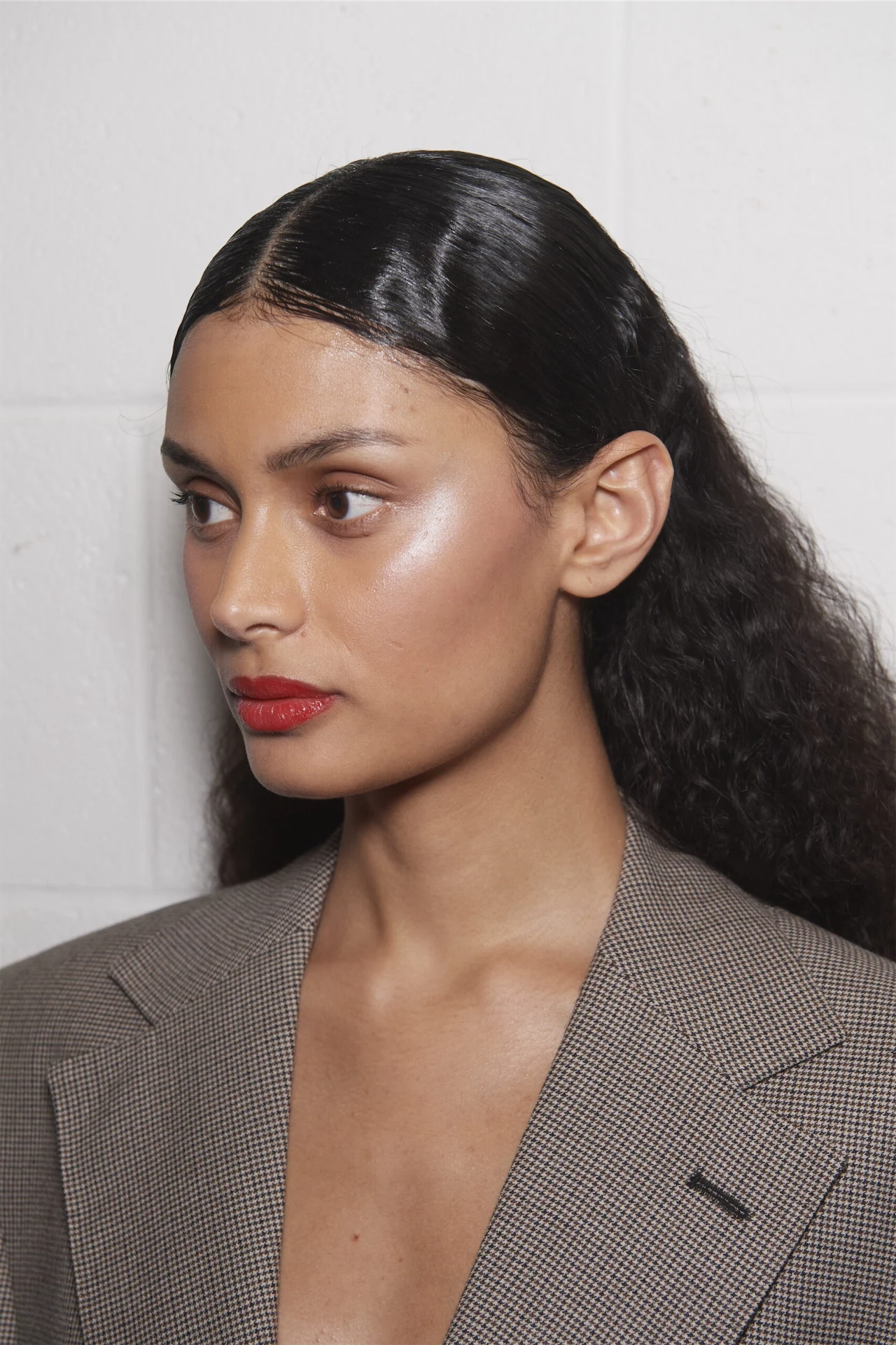 Use a blusher brush and some hairspray to tame flyways once you have all of the hair locked into place to refine the look. If you really want to slick every hair down and go for that catwalk effect, apply a small amount of wax or shine cream to your hands and run them over the surface of your hair when pulling it all back and into the pony, try L’Oréal Professionnel Tecni.ART Fix Polish.