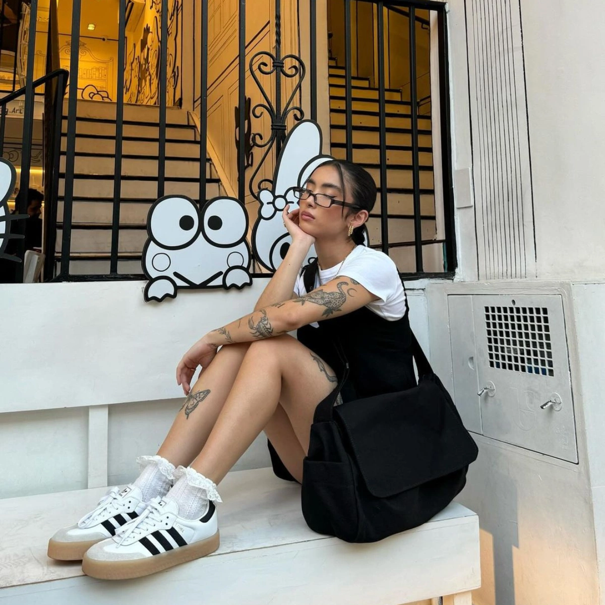 The best thing about Sambas is that they go with everything. No, seriously – everything. Including your favourite LBD. Add a white T-shirt and a pair of frilly socks for a summery look that requires little to no effort. We may have to wait a couple of weeks more for legs out weather though…