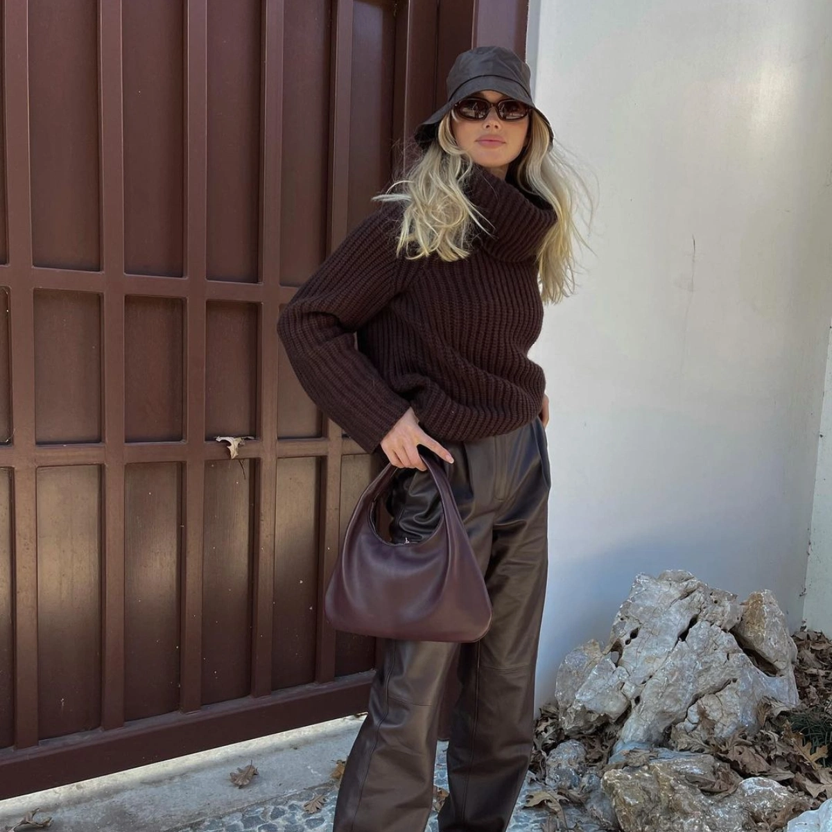 Take a leaf out of Elsa Hosk’s book and pair your leather trousers with a chunky oversized knit. The varying textures adds interest to an outfit even if it’s monotone like Hosk’s… and with temperatures dropping and winter making its presence known, you’ll be glad of the extra layers.
