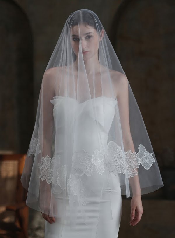 “A beautiful fingertip-length veil is often overlooked for the longer, sweeping veils. I adore it when a veil almost melts into a wedding gown, seamlessly, complimenting the dress beautifully rather than taking over.”