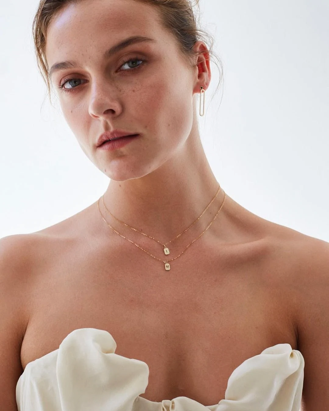 For example, I’m not usually a statement jewellery person. Instead of chunky necklaces or colourful earrings, I usually opt for more delicate, everyday wear like a paperclip necklace or gold hoops. So, when choosing my wedding jewellery, I’ve been on the hunt for similarly subtle pieces that I know will complement my dress details.