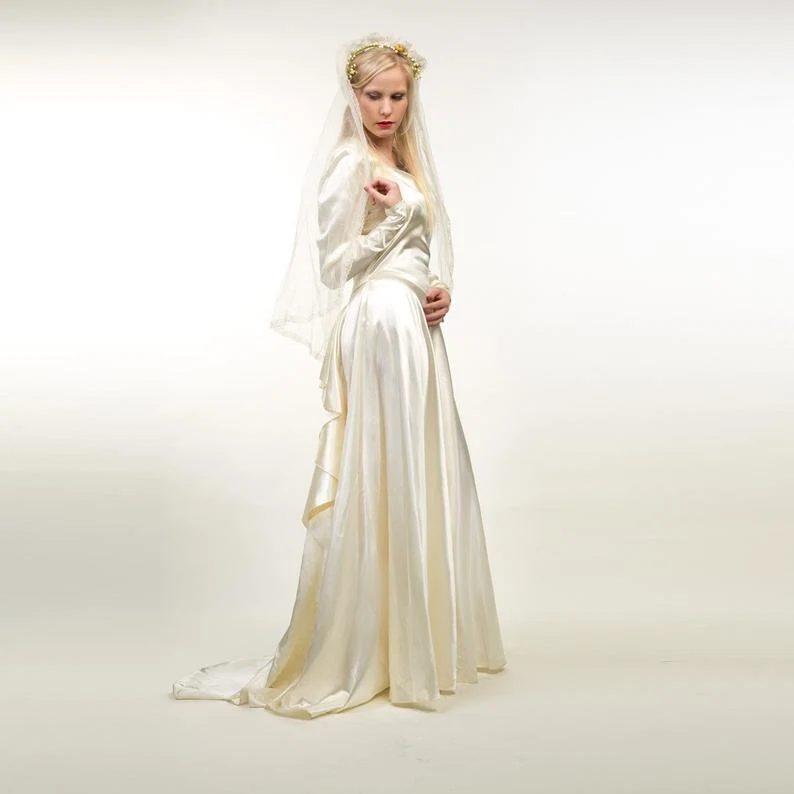 40s ivory satin wedding gown, size M, €174 from denisebrain