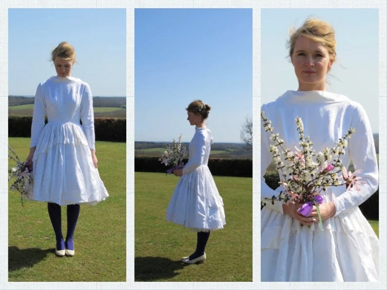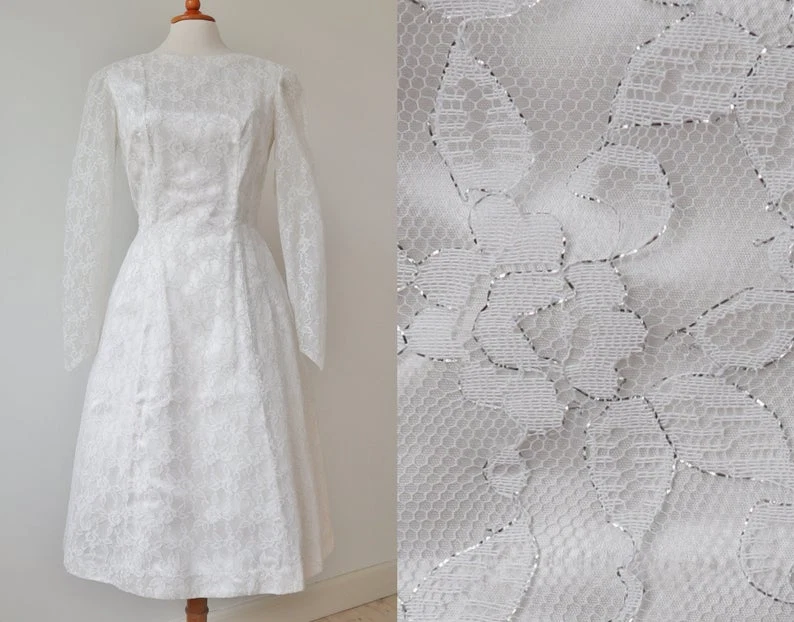 1950’s ballerina brocade short vintage wedding dress, size M, €430.14 from CrystalVintageUK