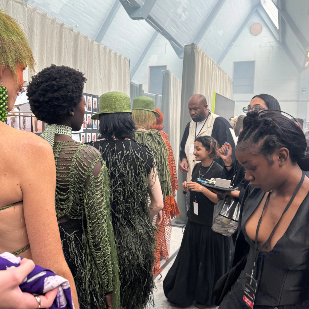 By now, the backstage monitor is showing guests filtering into the venue. We’re gifted a precious 15-minute delay, the show now starts at 10:15am. I praise the Lord, then I use the time to line everyone up, triple-check the running order and send the last models to the glam team for final touch-ups.
