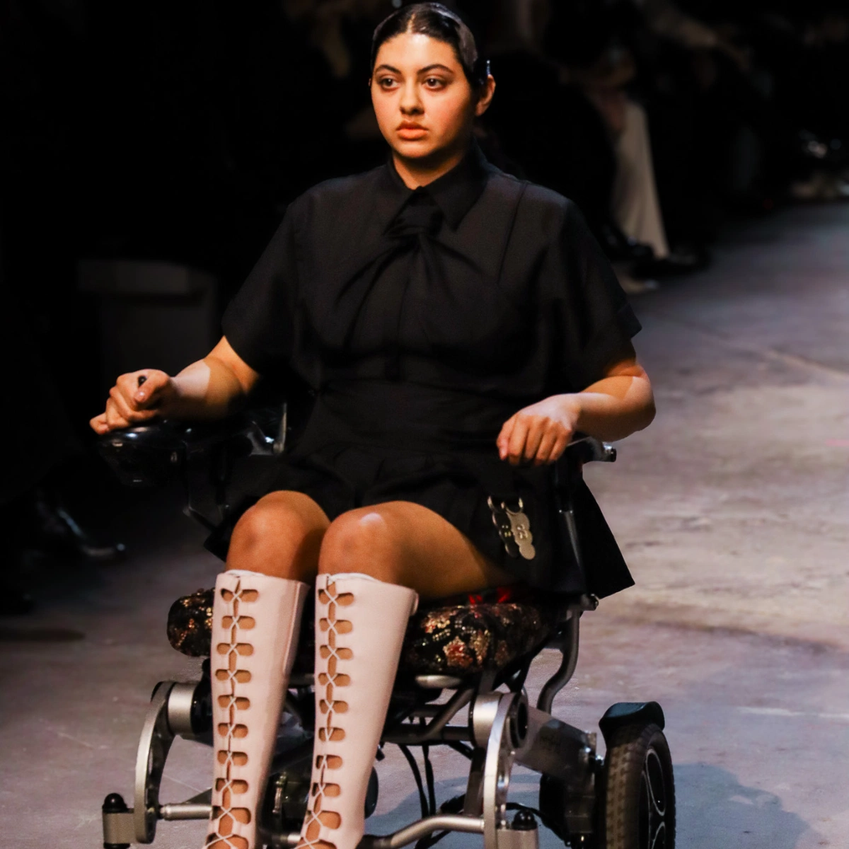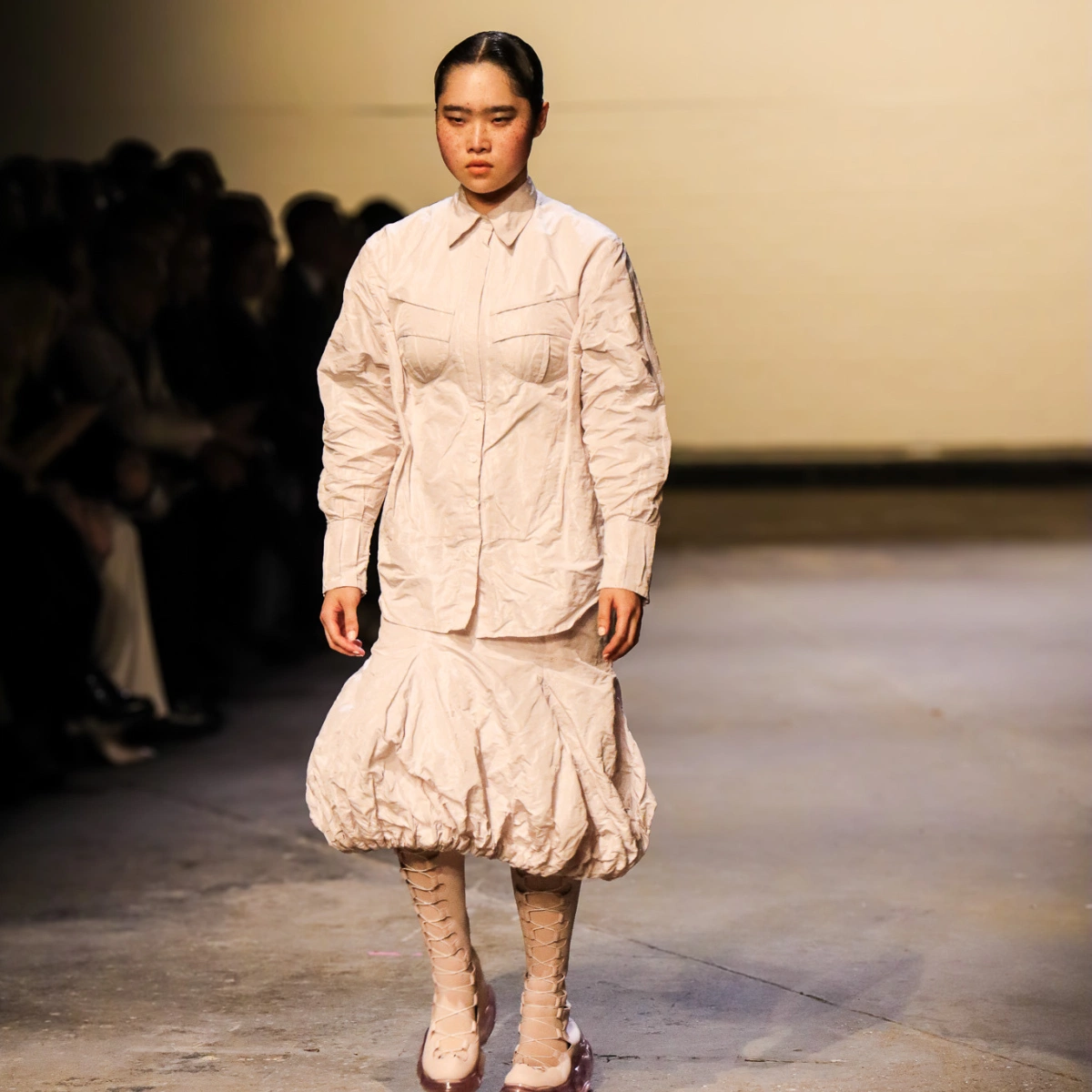 When the show first began and the music started, lights went on and the model walked out, I instantly got goosebumps and had to start adjusting my camera settings to get the perfect snap. The show flew by and before I knew it, it was time to pack up and go. Sinéad had created incredible garments and accessories that echoed back to the origins of Irish dancing shoes. I fell in love with everything from the collection, everything was so eye-catching, down to the oxblood colour palette to the openwork, silver hardware designs. The collection, ‘Character Studies’, celebrated body diversity and sexuality and featured many inclusive models on her runway. Bravo! I met two lovely photographers along the way in the depths of the dark lit photography pit, Hannah and Sarah, and chatting to them really was a highlight of the experience. They shared some tips, tricks and advice to me when I expressed that this was my first fashion show. Their content coverage for LFW is incredible and I think it’s so wonderful to see women photographers killing it.