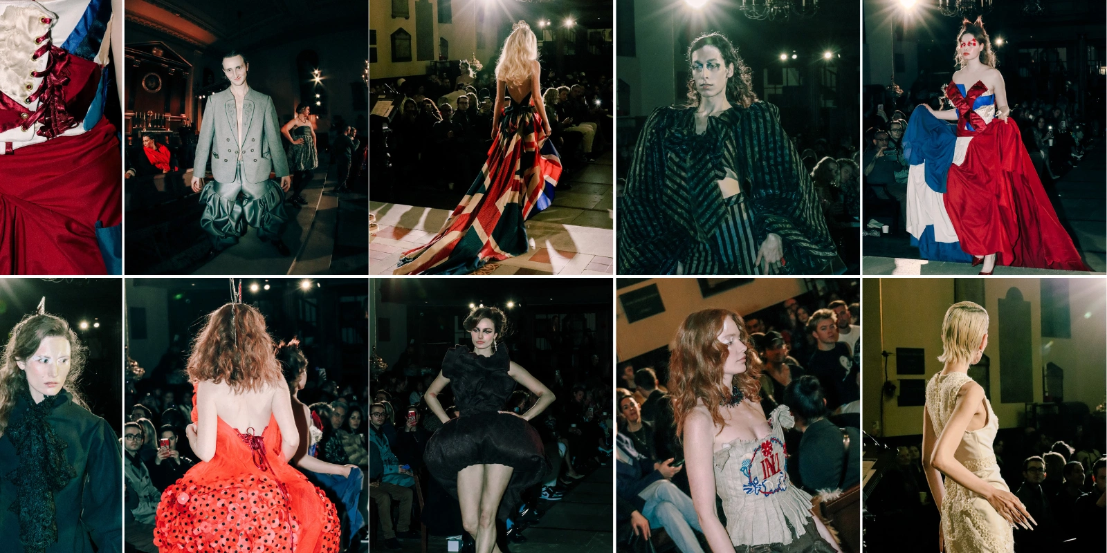 I went shooting some more street style photographs and caught some cool people after Chet Lo’s fashion show. I bumped into a good friend of mine NIARA, a very talented musician and producer living in London and together we took one of my favourite set of street style pictures around in the Kensington area. Afterwards, I made a beeline over to Hector Maclean’s runway show, which I had a backstage and afterparty pass for. This show was held in Covent Garden inside a church and was filled with bold union jack prints, punk spikey hairstyles, and almost a collage-like fabric dresses; it felt like an ode to Vivienne Westwood.