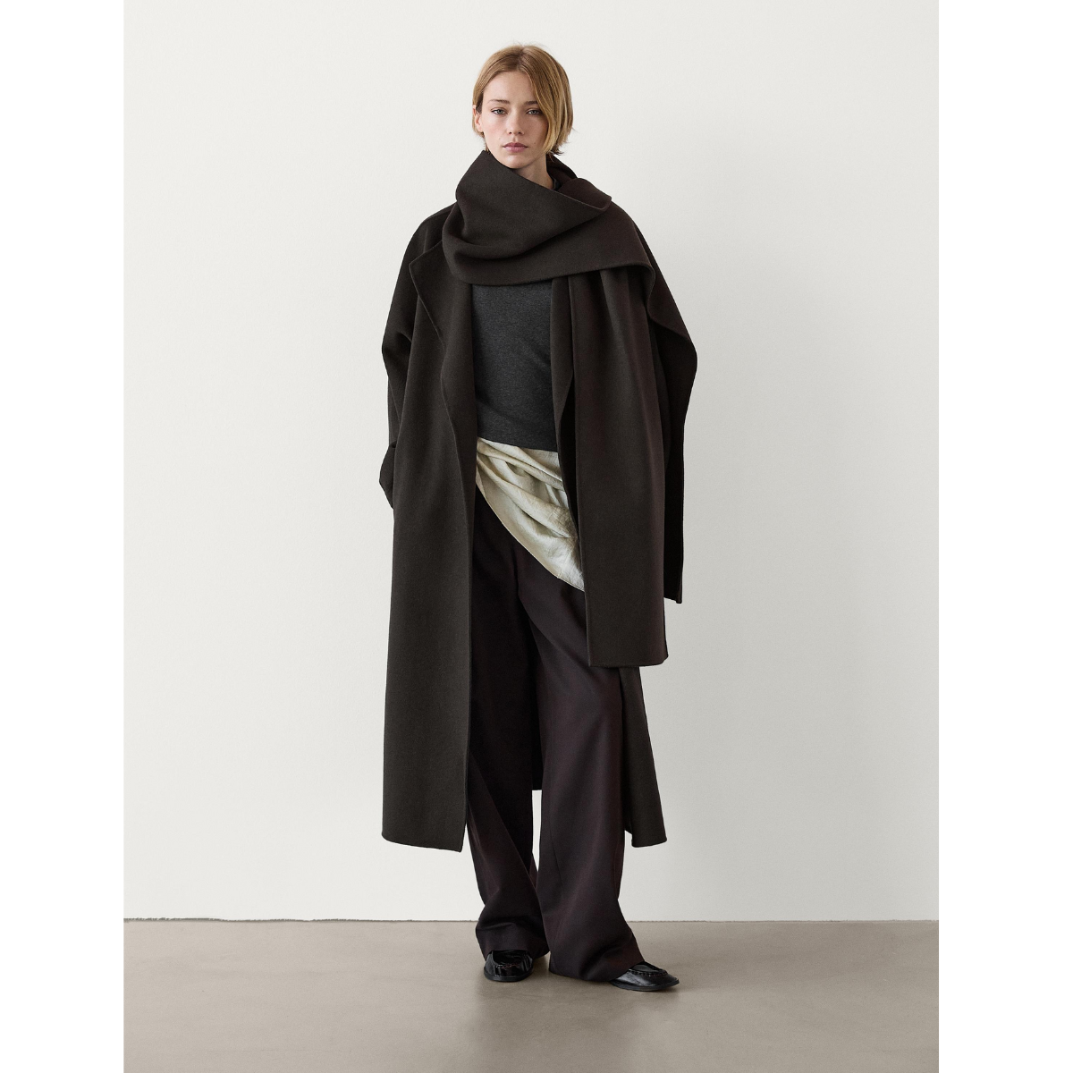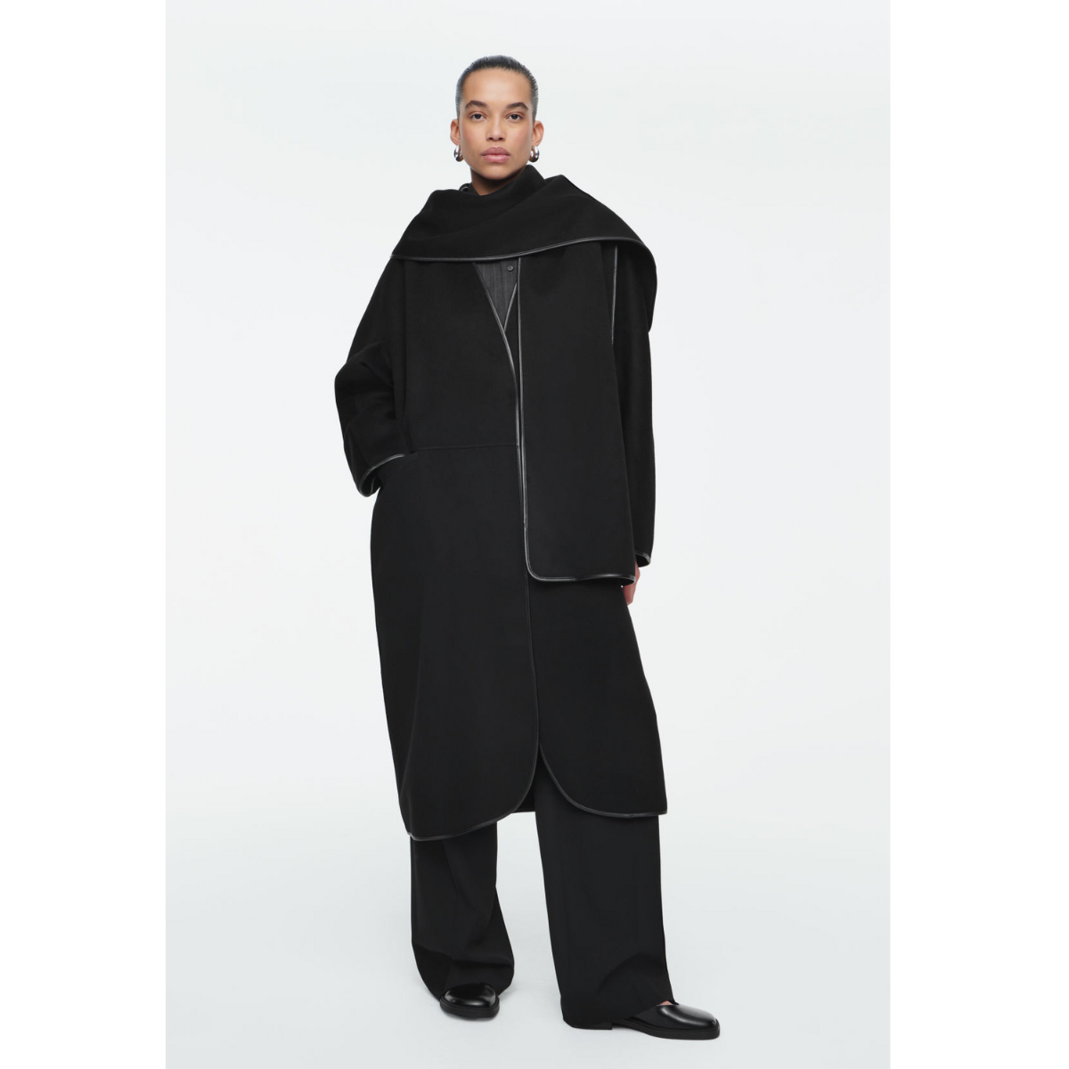 The shawl scarf coat emerges as another standout winter coat for AW24, blending elegance with enveloping warmth in a single, stunning piece. This design reimagines outerwear with a voluminous shawl collar that can be worn as a scarf, draped effortlessly for an instantly sophisticated look or wrapped tightly for maximum warmth against the season’s chill. Luxurious fabrics like cashmere, wool blends, and buttery-soft alpaca bring both comfort and style, while rich, neutral tones—think deep olive, slate grey and camel—make it versatile for any wardrobe. The shawl scarf coat combines functionality and high fashion, offering a layered, cocooning effect that’s perfect for braving winter’s elements without sacrificing style. It’s a defining statement piece, capturing the essence of elevated simplicity and cozy sophistication.