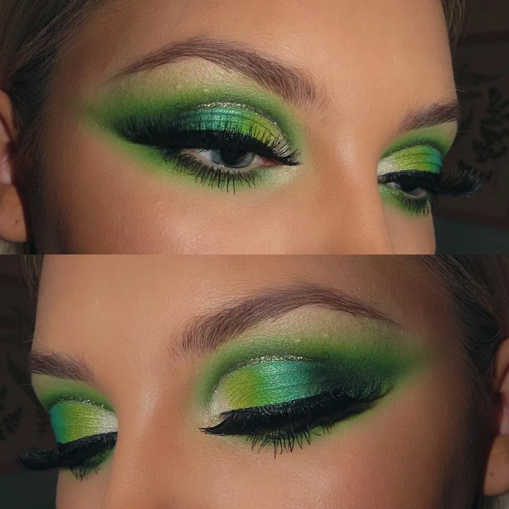 St Patrick’s Day is upon us again and the streets are sprawling with excited natives and tourists alike. Everywhere you turn are green hats, fake ginger beards and novelty shamrock glasses. But for beauty lovers like us, it’s more fun to celebrate with make-up. This weekend is the perfect time to experiment with the usually untouched side of your eyeshadow palette. Dip your brush into emerald green shades and lime green hues. Want to go all out? Add glitter. Paddy’s Day doesn’t have to be tacky – it can be beautiful. With that in mind, check out these nine looks for inspiration:
