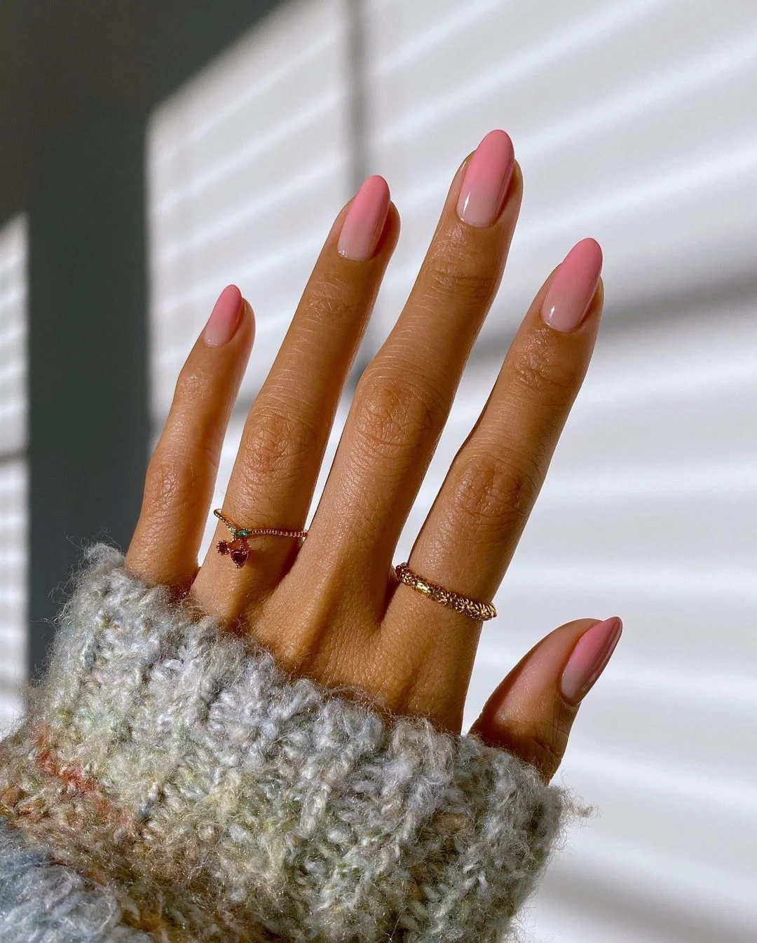 “Blush pink nails”, are the ombré style take on classic nude – get experimenting with shades of sheer rosy pink.