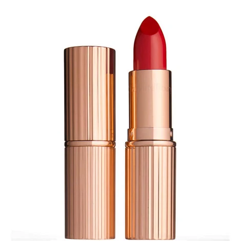 - MAC Lipstick in Ruby Woo, €20, is perhaps the most famous red lipstick of them all. The much-loved shade is extra matte, extra red and lasts the whole night long. If you’re finding application tricky, coat your lips with a thin layer of lip balm to ensure it goes on as smoothly as possible.