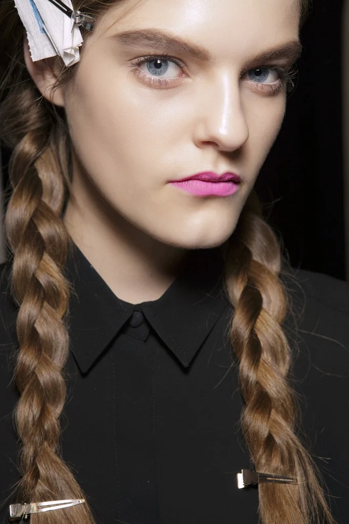 Donna Karan went for a three-dimensional twist on the classic low pony braid, while?Franchi?teamed it with an intricate fish tail. We loved the chic equestrian french braid at Biagiotti and Burani also did a sweet high-ponied knot braid that’s the perfect casual?Sunday?up-do. If you don’t fancy the pony, the unfortunately-named-but-very-chic-pigtails are also a huge hair trend for the season, either go?the messy and loose like?the Scott show or the DKNY slicked back and super neat look. Gaultier went for a brave fully braided up-do, while Mohapatra did an edgy take on the traditional bridesmaid style. If you won’t want to have all your hair swept up, look to Chlo? or Minkoff for inspiration. Chlo? took the weight out of the hair with tight french braids and we love the side fringed braid at Minkoff.