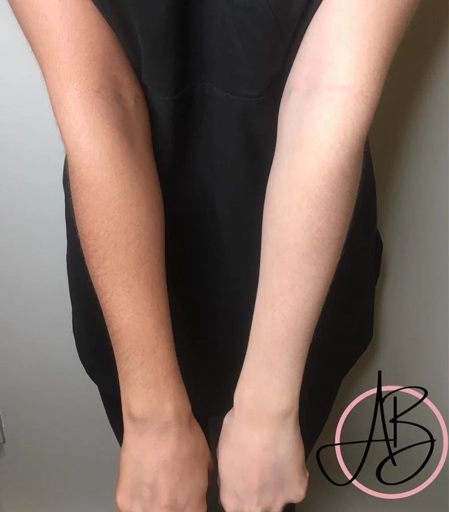 Aside from your arms, you can use tan to contour (or tantour) other parts of your body too. For example, using a slightly darker shade of tan on the inner and outer sides of your thighs (leaving the middle of your thigh a lighter shade) can make your legs appear more toned. Finish this look by blending a small layer of tan down the centre of your shinbone.