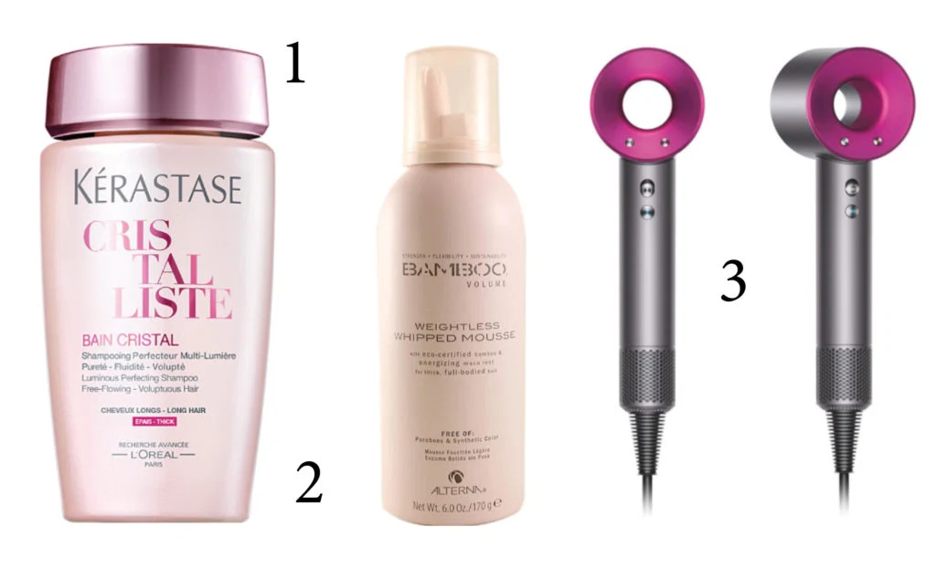 “My Dyson Hair Dryer keeps my fly away hairs smooth and dries my hair super fast. And my Bamboo Whipped Mousse smells lovely and effortlessly gives my hair the Volume boosts it needs.”