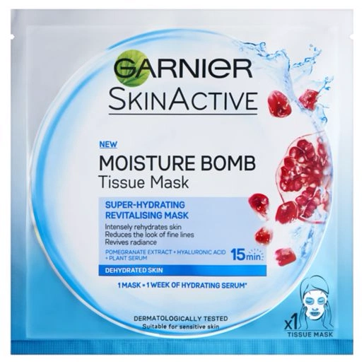 Garnier Moisture Bomb Pomegranate Hydrating Face Sheet Mask €2.66; boots.ie