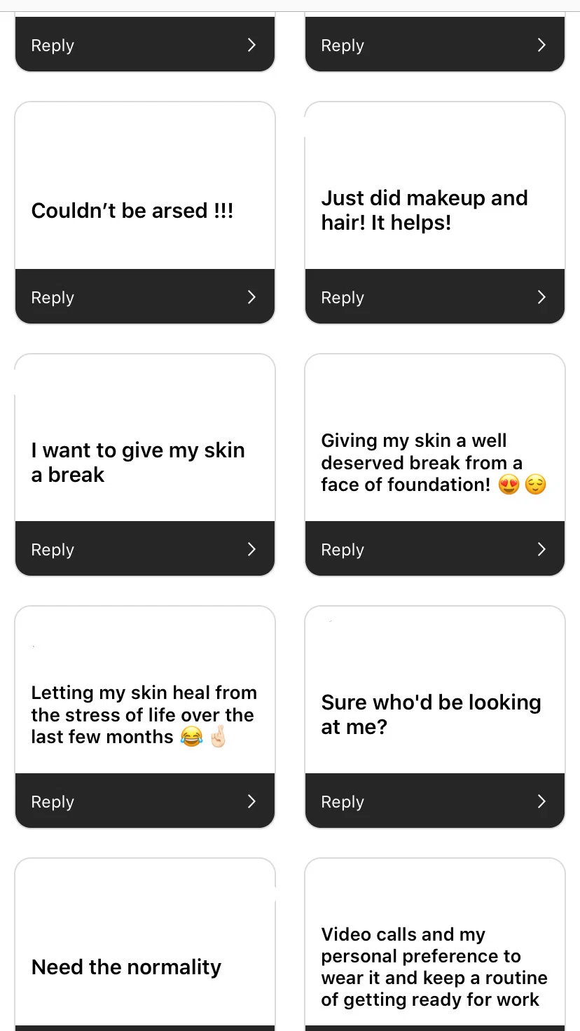 Here’s a sample of some of your responses about why/why not you’re wearing make-up while working from home.