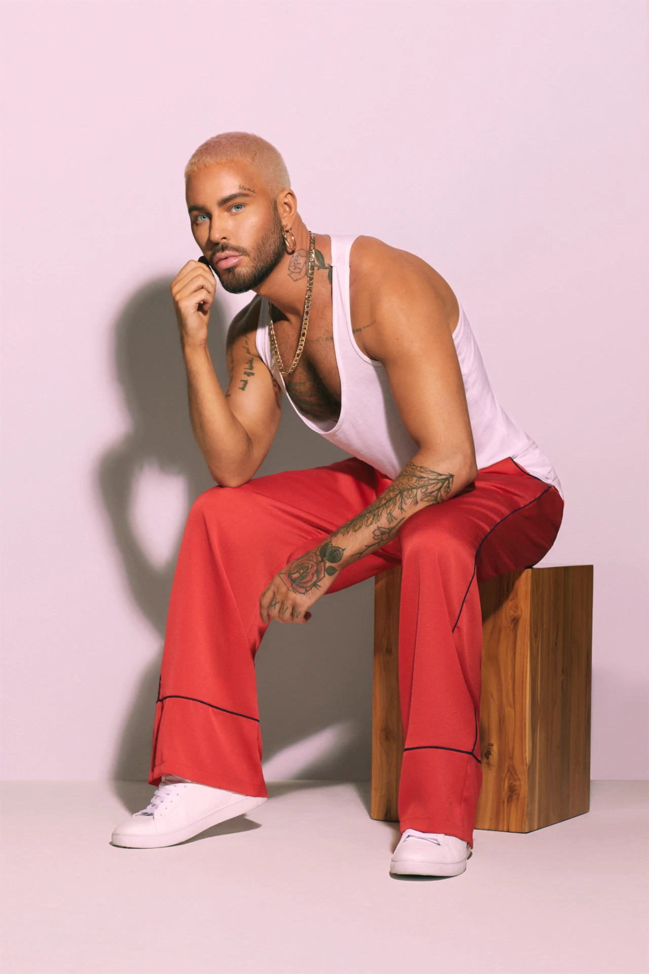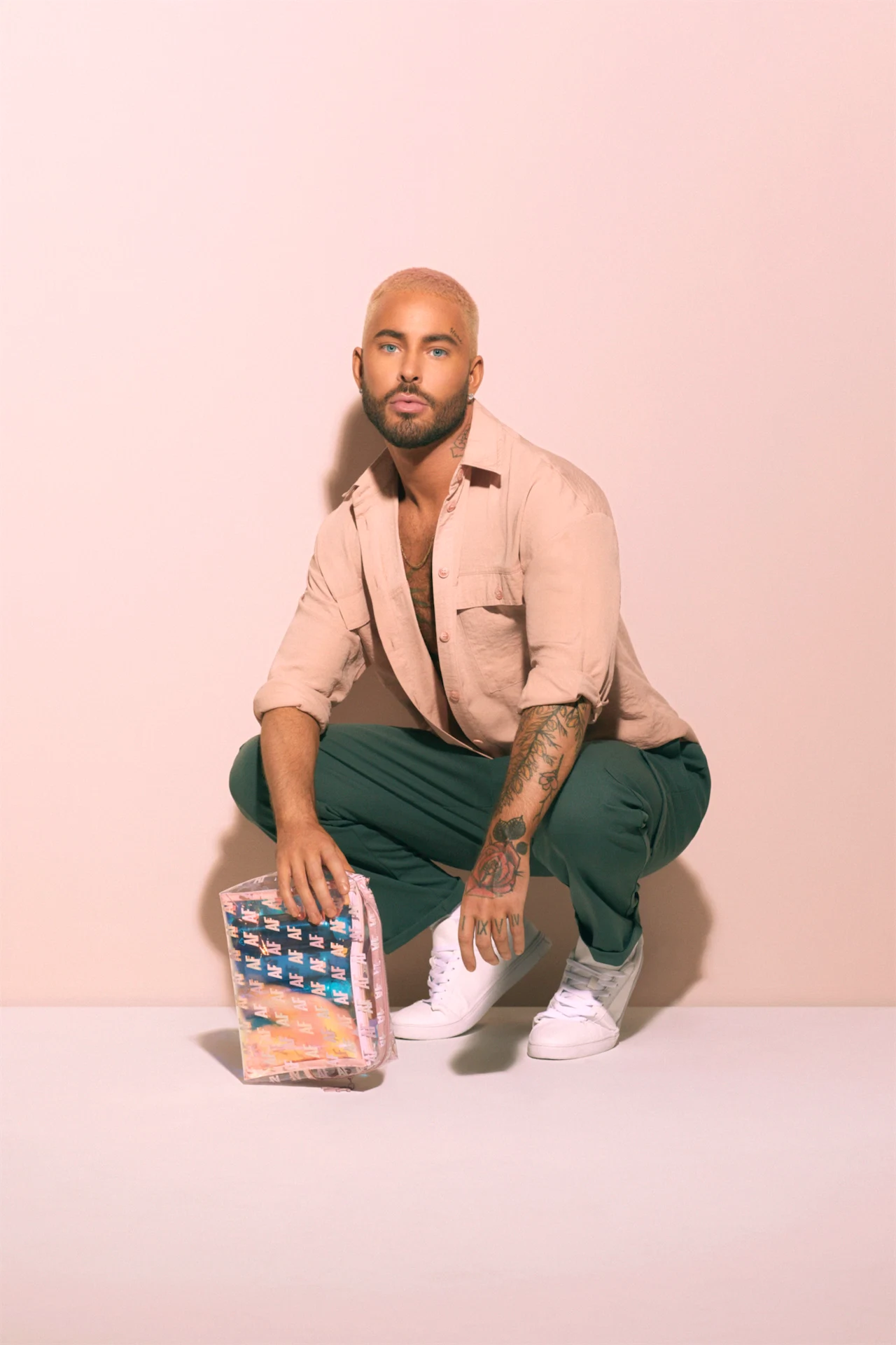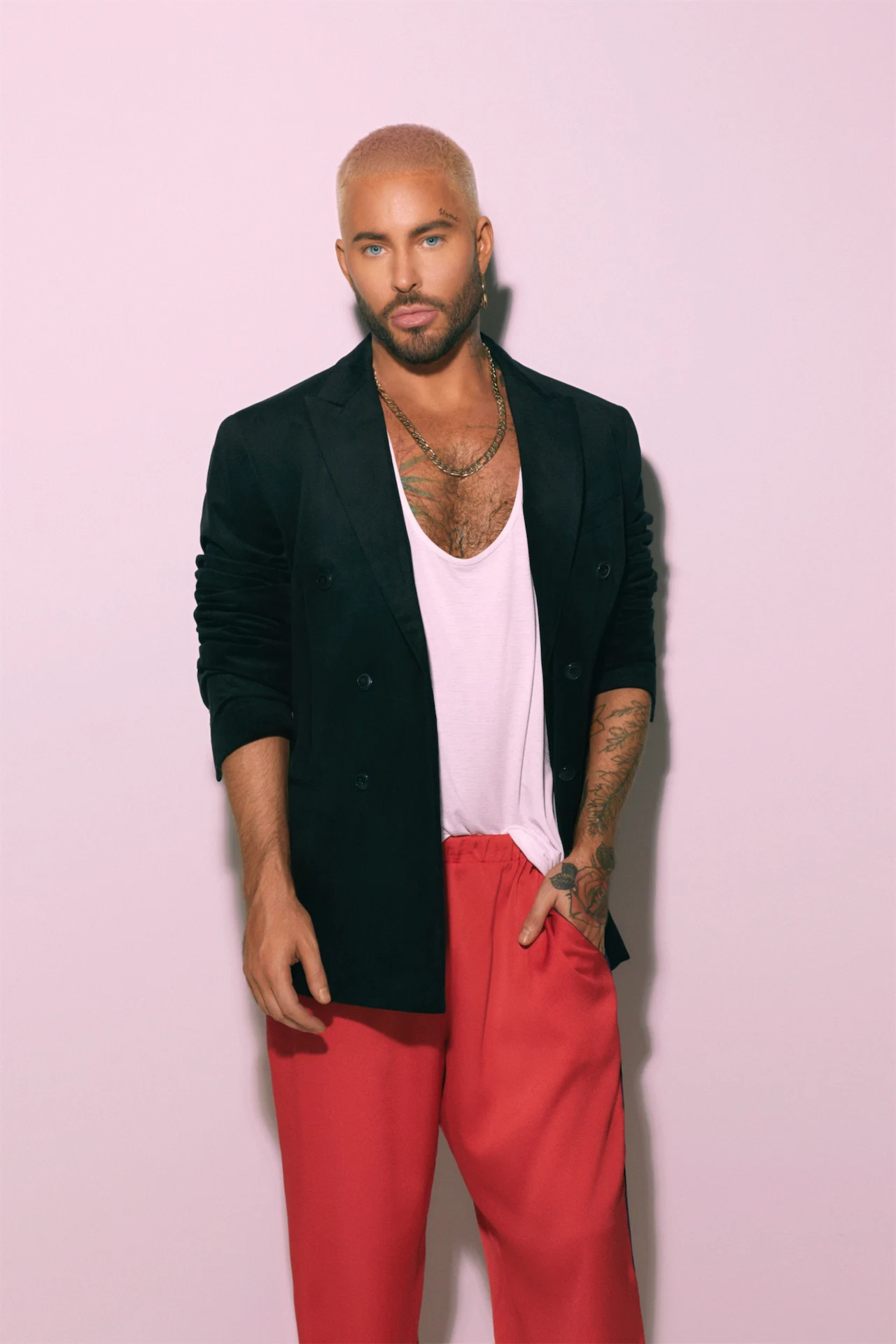 At 16, Andrew had an agent and started working in TV, film and art in Ireland, then moved to Paris at 17, then to New York at 21. “That’s when I started incorporating celebrity into my job. So it’s all been an evolution to now, a point where I’m working with Primark. Primark has been such a big part of my life and childhood, like a lot of people in Ireland. To be able to have moved out of a country that really didn’t have a place for me, then create a whole luxury-inspired haircare line and come back to Ireland and share that with every woman – it feels very healing for me. I’m coming back to a country that I don’t even recognise and I’m so proud of. It has come so far in one generation. It has turned from a very conservative, single-minded place to this, loving, colourful, warm place with, in my opinion, in my serious opinion, some of the most glamorous women in the world, who really take pride in their appearance and everything in between.”