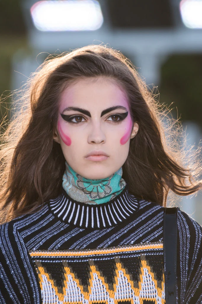 The collection was an homage to Japanese design and culture and Kabuki-mask inspired looks were all dramatic brows and colourful face paint.