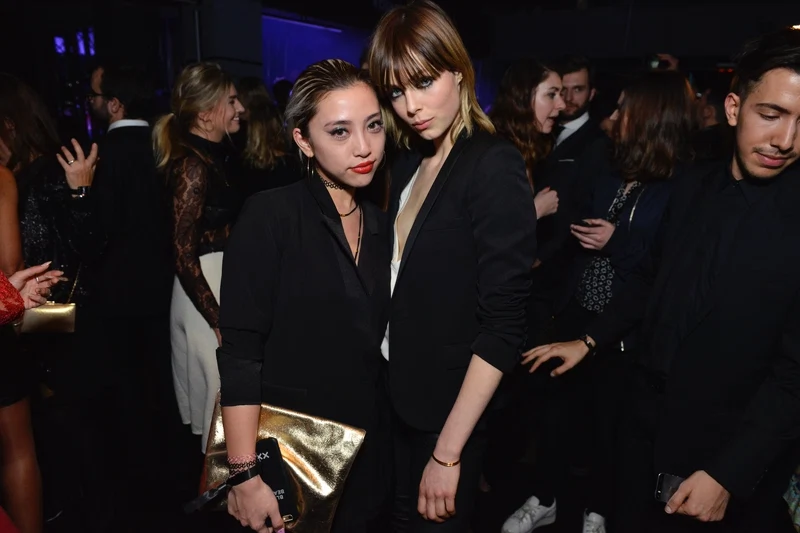 Over endless glasses of Tattinger champagne and a thumping electro-pop playlist from DJ Natasha Lejeune, Paris? beautiful young things turned up, clad in black from the sootiest eyeliner (and lots of it), to the skinny leather leggings, so de rigeur with models and other human gazelles.