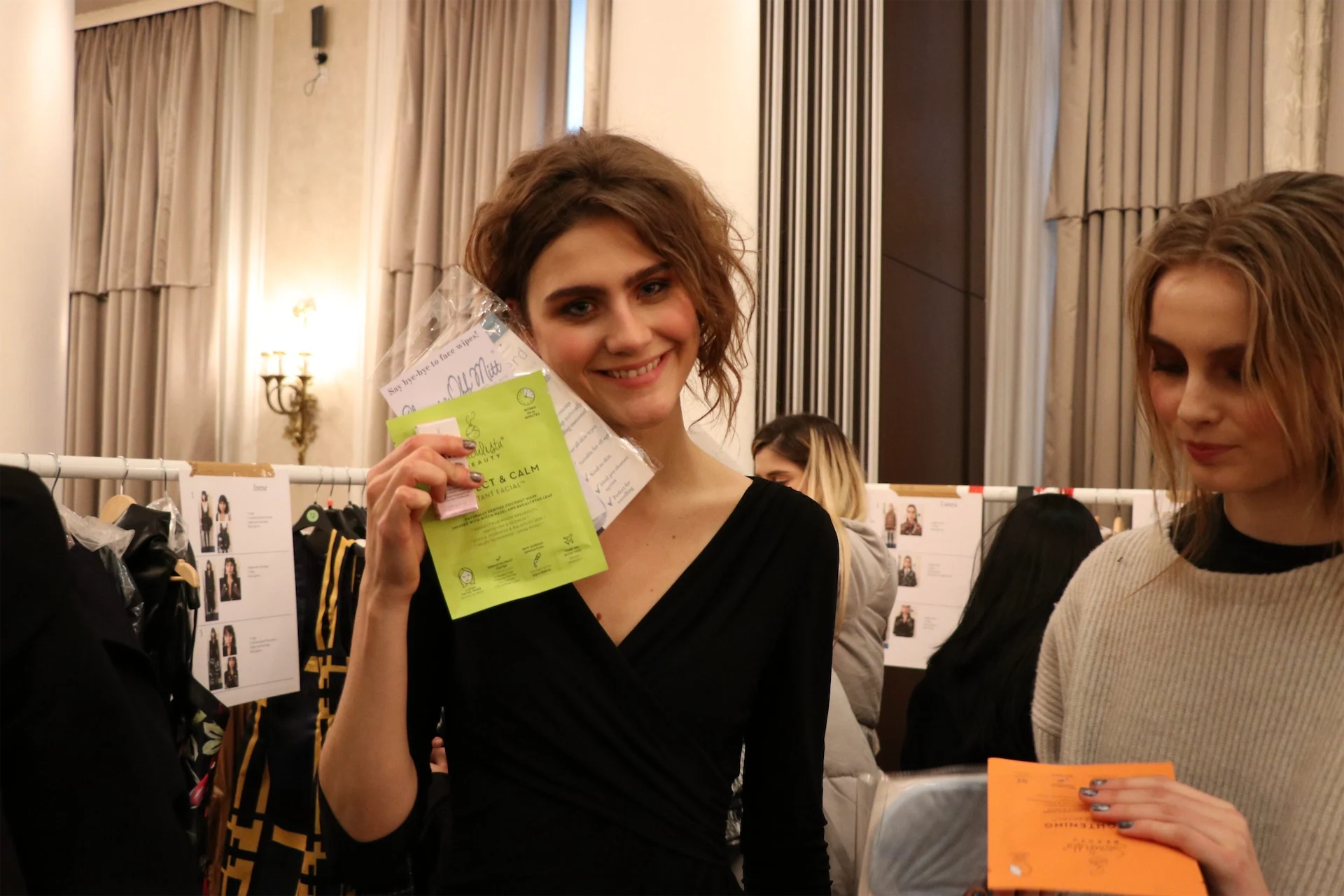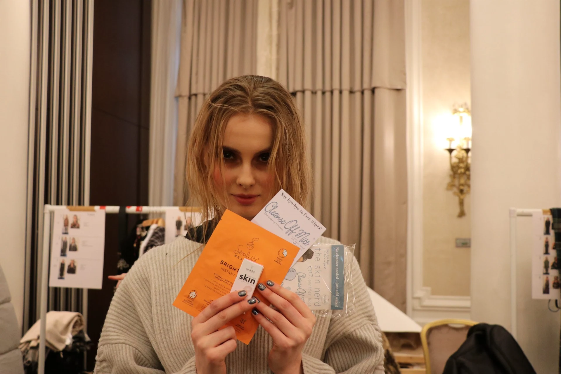 If the models didn’t have time to have a Seoulista Instant Facial sheet mask put on prior to the catwalk, we sent them off with one to use post-show to rejuvenate their skin for the next day, along with a Cleanse Off Mitt for all. Whilst at our station, we had refreshments in the form of Yana collagen shots, which are packed with vitamin C, flavonoids, hyaluronic acid and bovine collagen, just to give their skin a bit of a boost from the inside.