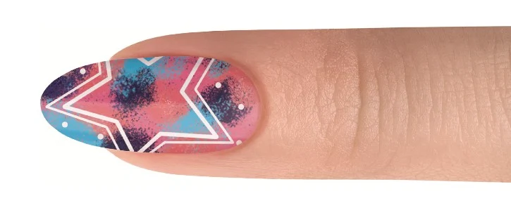 After completing your nail prep, apply dots randomly using a pink shade (shade used: Me, Myself-ie And I). Do not cure.