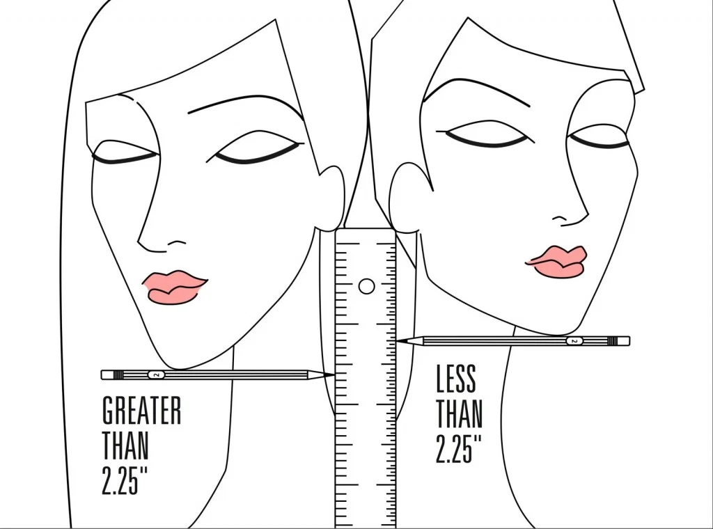 To try it, position a pencil or pen under your chin horizontally and then place a ruler under your ear vertically. Take your measurement from the intersection of the pencil and ruler. Less than 2.25″ and this indicates’short hair would really suit you, and if it’s anything more, chances are long locks will be the most flattering choice for you. Face shape obviously plays a part here too, so remember to take into account your own.
