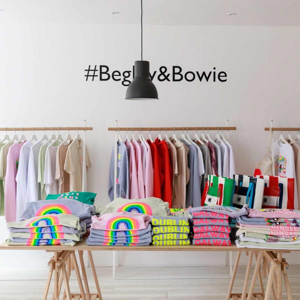 The design studio allows Doireann to work on commission-based projects – past clients include the likes of Adare Manor, Dromoland Castle and more recently Java Republic and Helen’s Bar in Kilmackillogue – but as that ticks along in the background, this year, the focus is on Begley & Bowie, the fashion brand and shop. “I want to make it bigger,” says Doireann. “I want to take on more staff, maybe move into UK markets and build up the brands in-store.”
