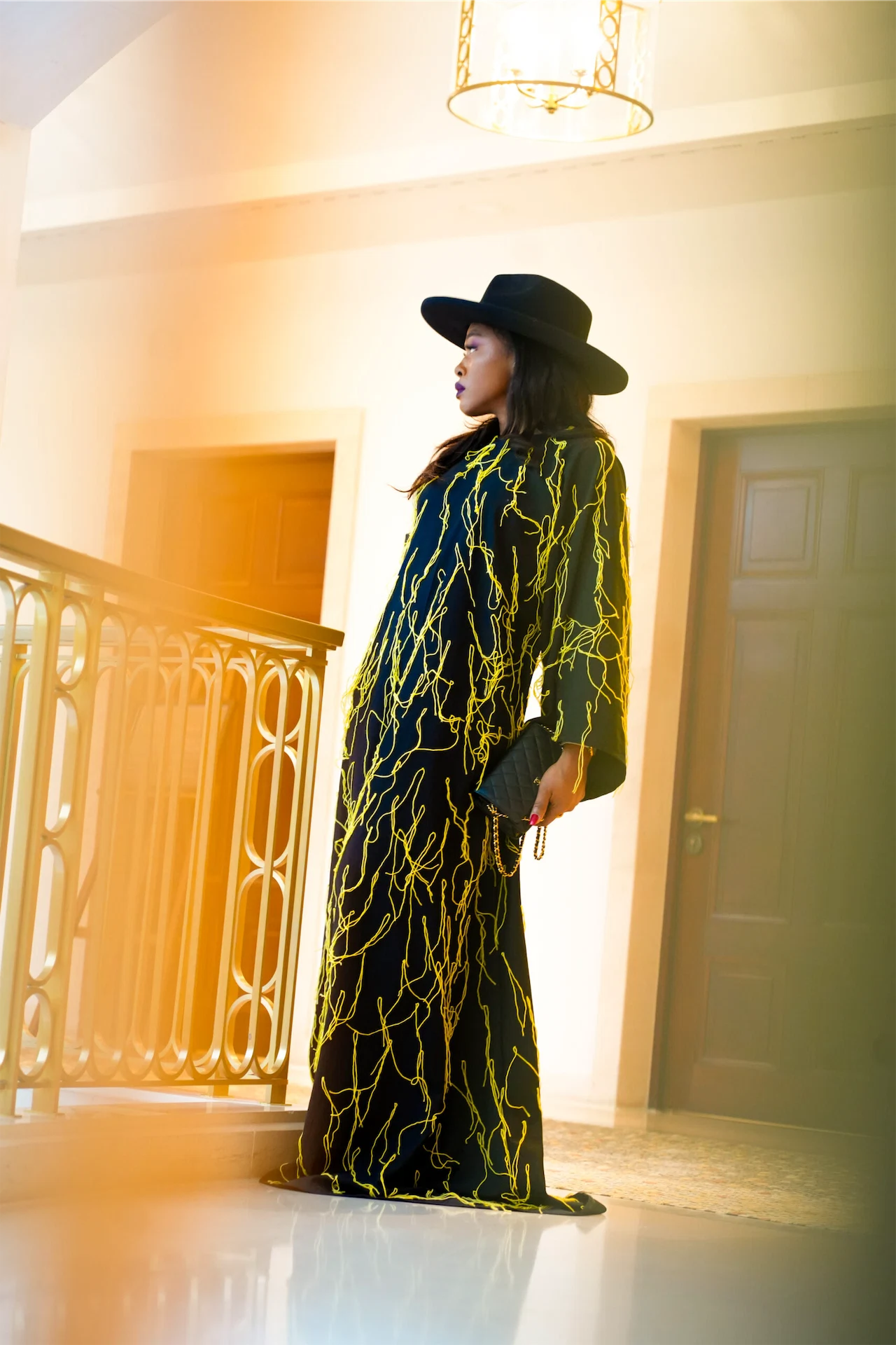 Between meetings and two shows, Sunday was a whirlwind. My outfit of choice? A striking black dress with yellow fringe by Nigerian designer Peter Oshobor. It’s a piece that not only made me feel regal but also served as a celebration of my heritage. Paired with my signature thebuckshat fedora, a mini Chanel handbag, and black Louboutins, the look embodied timeless elegance with a cultural twist.