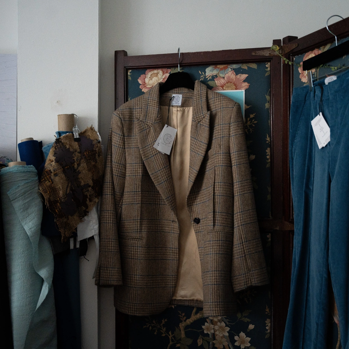 Choosing to release small, trans-seasonal collections rather than follow the latest fads, Cleo is somewhat indifferent to trends – they’re “grand, cool” she tells me. For her, it’s not about avoiding them altogether but rather, encouraging intentional shopping. “If I’m going to do something that is kind of trendy at the moment, I certainly would like to have my own take on it because otherwise, you’re just competing with the high street. I want to create things that are useful and not too opulent. My clothes and my designs are very much everyday wear – people wear them to special occasions too – but they’re designed to get a lot of use.