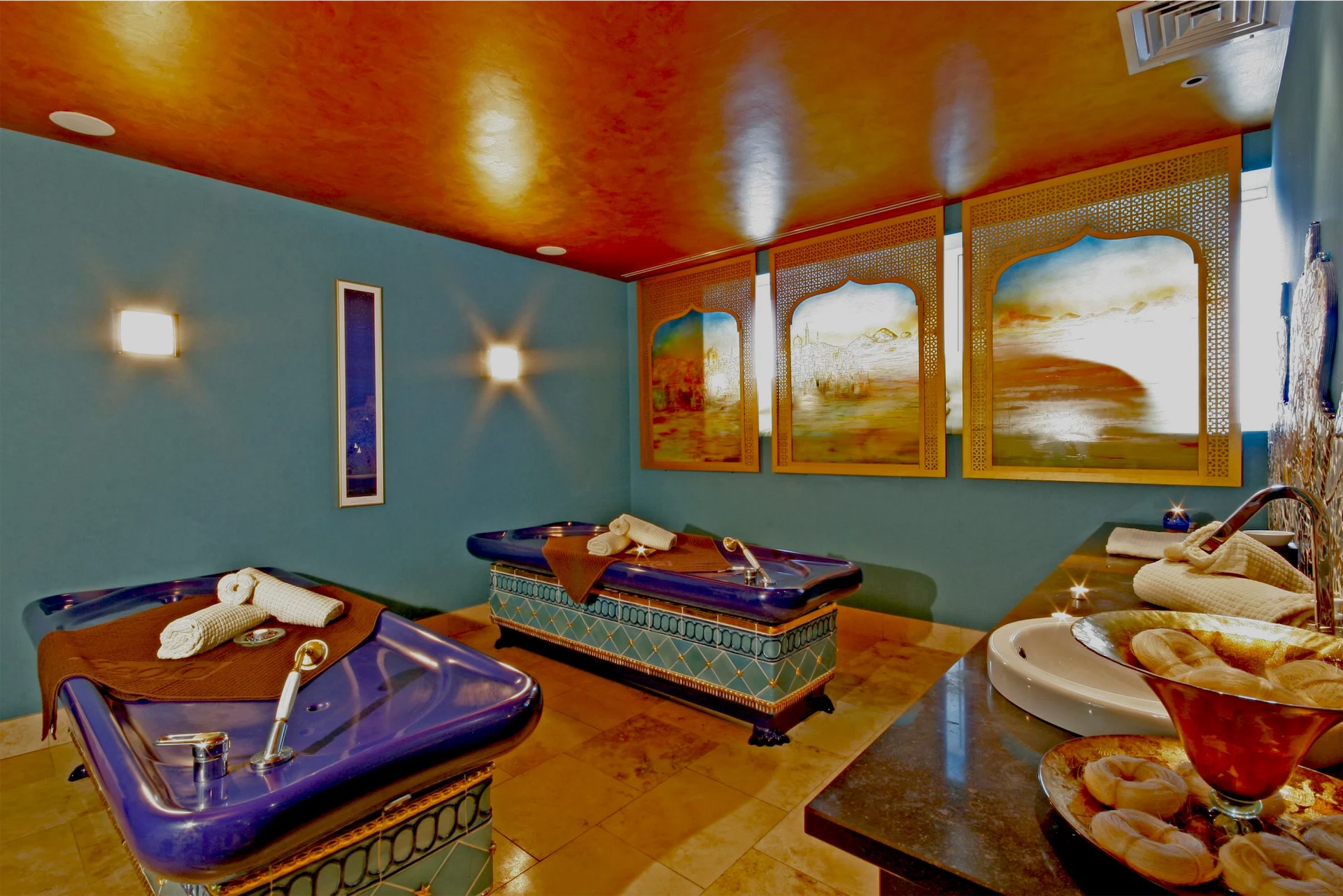 The Hamman Ritual – an ancient bathing ritual for a feeling of purification – takes place in the gorgeous Rasul Mud Chamber, and begins once guests lie down on a warm ceramic table for an invigorating full-body exfoliation. This is followed by a full-body super-hydrating foam massage, which guests can enjoy solo or share with friends as there are two beds in the room.