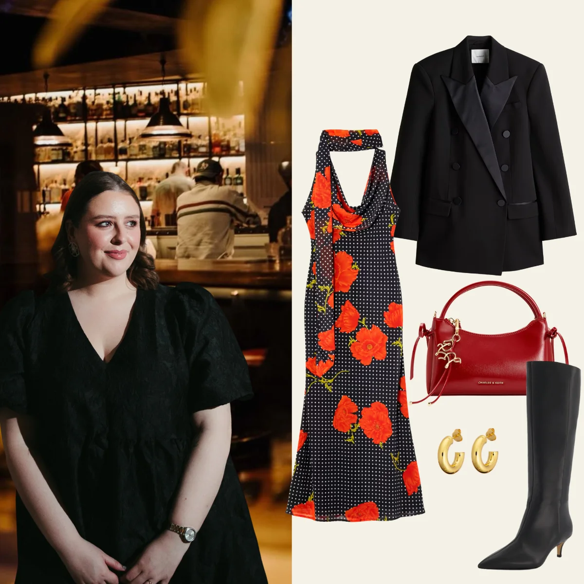 It wouldn’t be Valentine’s Day without a pop of red included somewhere in my outfit. I have been lusting after the Sophie Poppy Dress from Never Fully Dressed which is perfect for the occasion. To dress it down a little bit, I have gone for a gorgeous tuxedo blazer from H&M and knee high boots from Dune. I love to accessorise any outfit so this gorgeous tomato red bag from Charles & Keith caught my eye and I’ll keep my jewellery simple with gold hoops from my favourites at Crystals & Co.